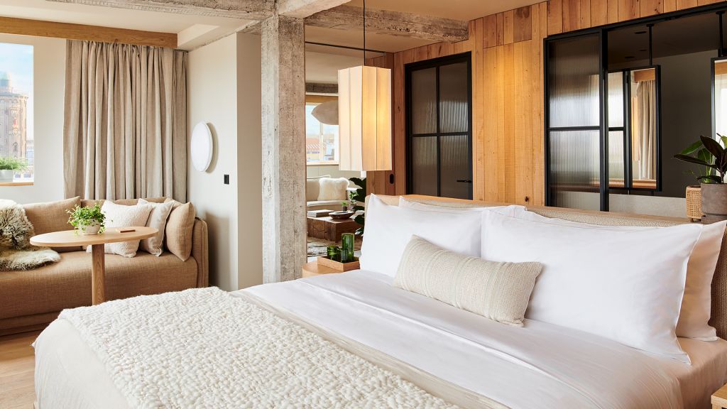 22 sqm King Bed, Free Wi-Fi, AC, Interior view or limited view. Room Amenities: Free Wi-Fi, Large Soaking Tub or Separate Walk-In Rain Shower, Filtered Water Taps, Hardwood Floors, Full Length Mirror, In-Room Greenery, Plush Pillowtop Mattress, Sustainably Sourced Bedding, Soft Cotton Bathrobes & Slippers, Bamford Bath Products, Eco Ionic Hairdryer, Yoga Mat, Minibar, Nespresso Machine, HD Smart TV, Personal Digital Safe, 1 Hotels Mobile App Smoke Free, Pet Friendly.