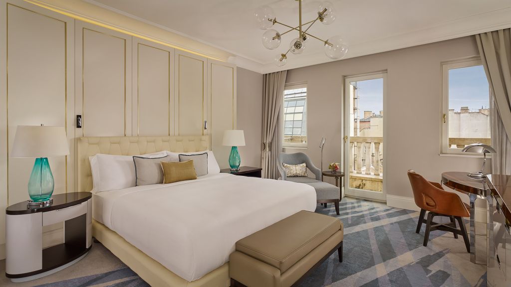 Elegant king room, offering a spacious layout and refined décor, with beautiful city or park views. Room features bathroom with separate bathtub and shower, a flat-screen tv with satellite channels, mini bar, 24-hour room service, coffee & tea making facilities and evening turndown service
