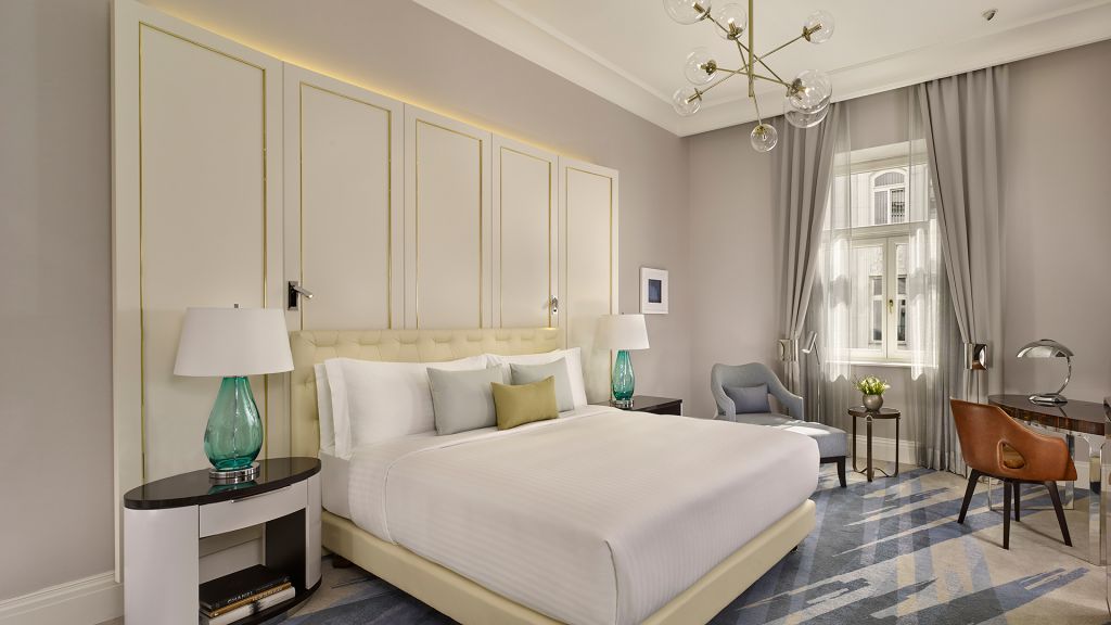 The hotel’s 200 rooms and suites each carry the easy confidence of a European manor with a modernist precision. Think soaring ceilings, velvet textures, and just the right brush of contemporary polish. Private balconies overlook the old city or the skyline’s steeples and spires. For those who know how to choose well, the Palace Suite and the Chairman Suite offer the kind of residential splendor that lingers long after checkout.