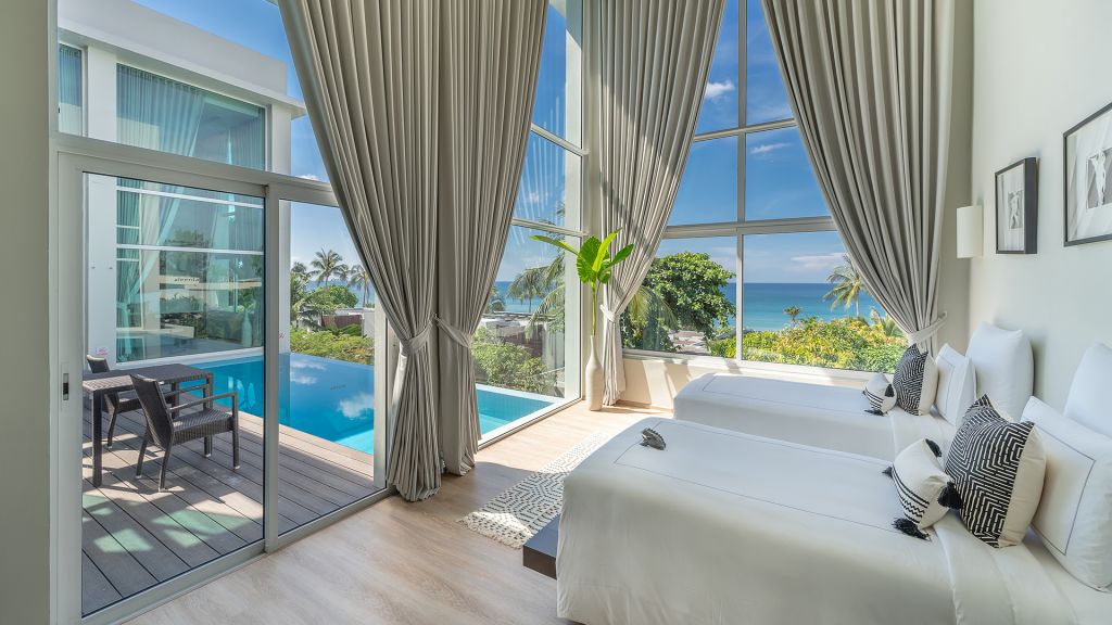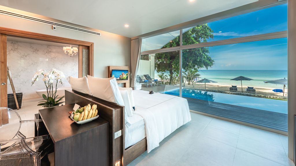 Villa with a full view of the Andaman Sea, king bed, private pool, private Jacuzzi and beach terrace.