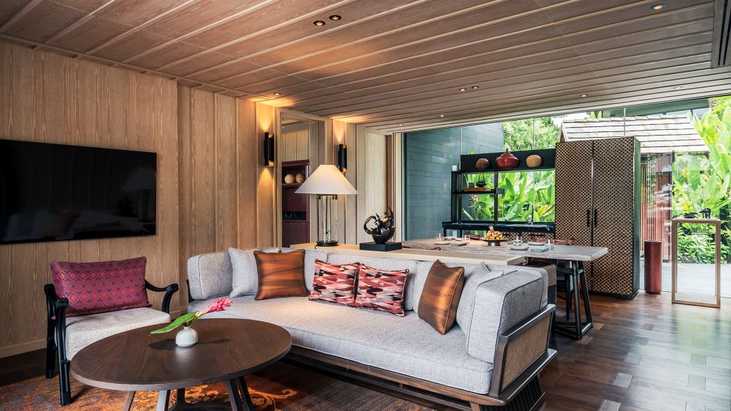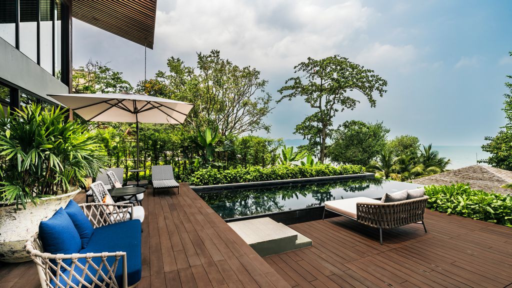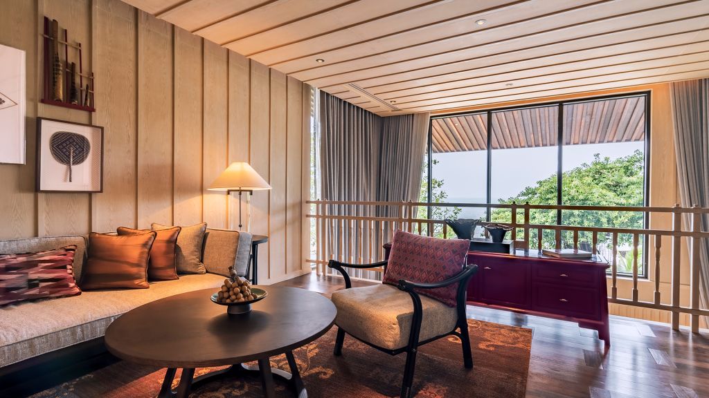 Experience elevated tropical living in this 104-square-meter villa, just one of two in this category, where blissful relaxation comes with a partial ocean view. This spacious villa features a 47-square-meter balcony, a living room with a wet bar and dining area, a bathroom that invites indulgence, and a 29-square-meter private pool.