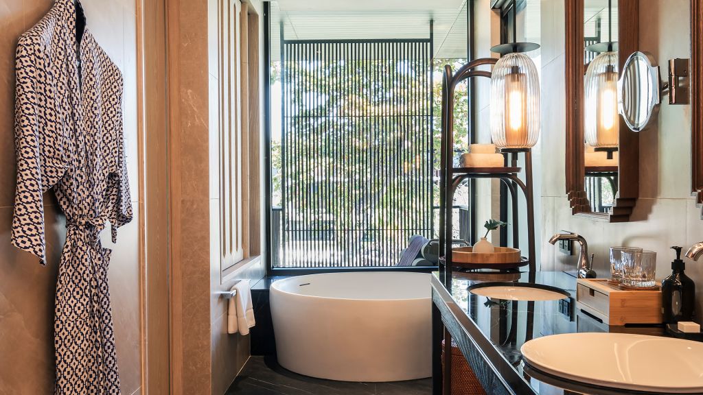 The resort offers 204 rooms, suites, and villas, each designed with a sense of place and connection to its surroundings. Rooms offer private balconies or terraces, daybeds, and bathrooms that pair rainfall showers with deep soaking tubs. For a more immersive stay, Lagoon Access Rooms allow you to step directly into the pool, while Pool Suites add the quiet luxury of a private plunge. Beachfront Suites sit closest to the water, framing morning light over the Gulf of Thailand. For gatherings, the four-bedroom Manor House and six-bedroom Presidential Heritage House provide expansive indoor-outdoor living, private pools, and discreet butler service.