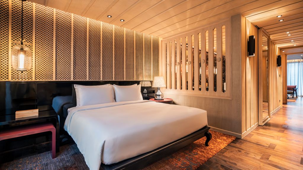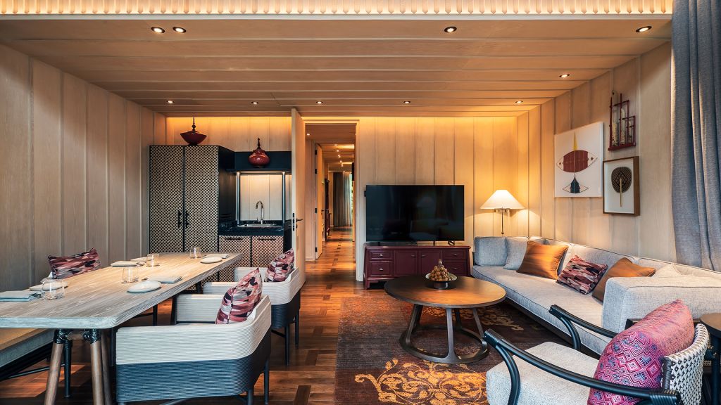This 70-square-meter suite features a 10- square-meter private plunge pool where you can cool off in the day and enjoy a serene dip in the evening. A living and dining area, a luxurious bathroom with rain shower and bathtub, and a 20-square-meter private balcony complete this spacious accommodation.