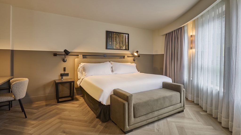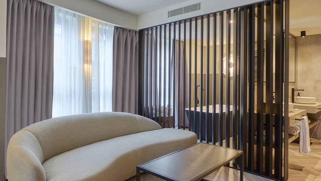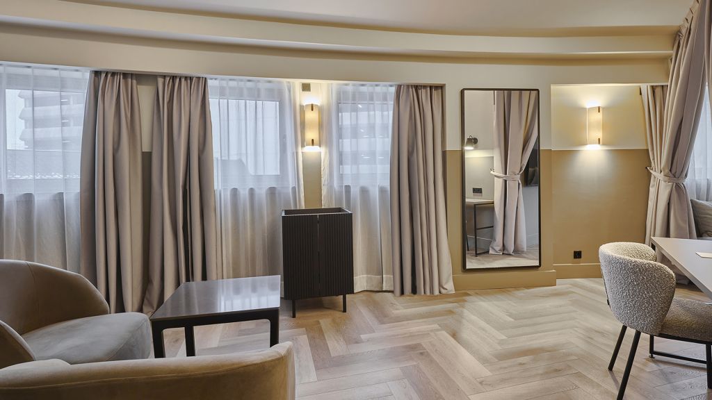 Our corner junior suite offers an inviting space right in the heart of andorra, making it an ideal choice for you and your partner’s getaway. The room features a comfortable seating area where you can relax and enjoy the beautiful sights of meritxell avenue. The spacious ensuite bathroom offers a large freestanding bathtub and a spacious walking shower, double sinks and exclusive amenities to ensure a luxurious experience. Addionally a dedicated desk area is also included, making it suitable for both leisure and work. After a day of exploring the andorran mountains, you can enjoy a cup of coffee from your in-room nespresso machine. At 47 sqm (505 sqft), the corner junior suite provides plenty of space, blending comfort and sophistication for a truly memorable stay with your partner. Additionally, a baby cot can be added upon request.