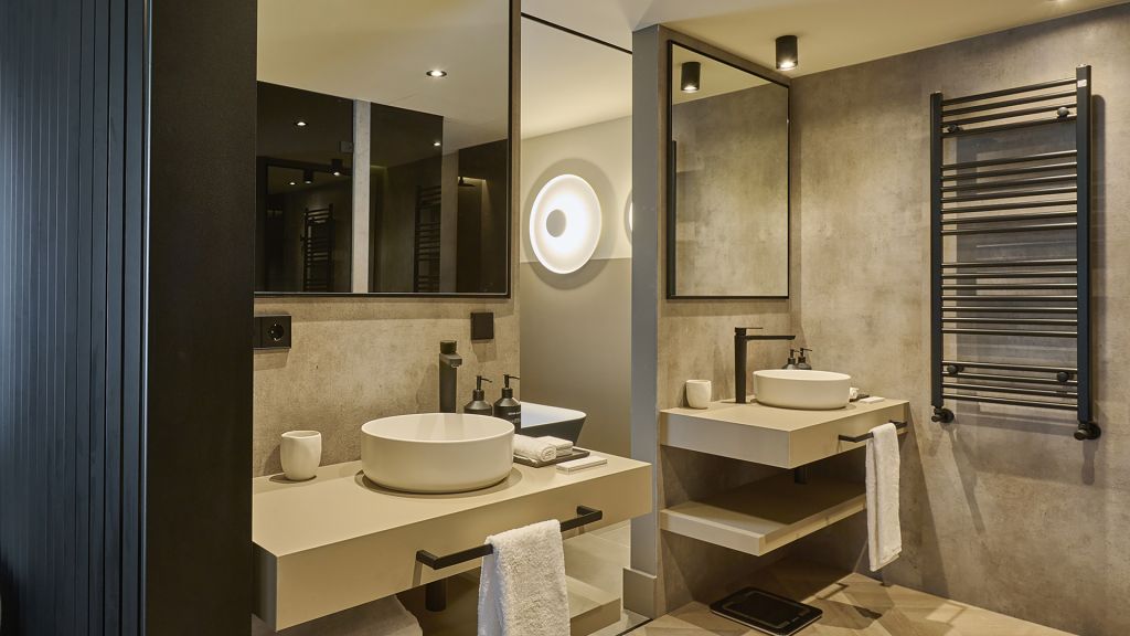 Our family suite is the perfect choice for extended family stays, offering extra space, comfort, and the opportunity to be together. The suite features two connecting rooms: one with a king-size bed and a small room with bunk beds, perfect for children. The second connected bedroom offers either a king-size or twin beds, along with a cozy children's room with a bunk bed. Toughtfully designed with families in mind, it creates the perfect environment to relax, make special memories, and feel right at home. The suite includes two elegant bathrooms, each with double sinks, a walk-in shower, and a bathtub. Exclusive bathroom amenities further enhance your stay. With 70sqm (753sqft), the family suite comfortably accommodates up to four adults and three children, our family suite goes beyond just a place to sleep; it is the perfect home base for your unforgettable adventure in andorra. Additionally, a baby cot can be added upon request.