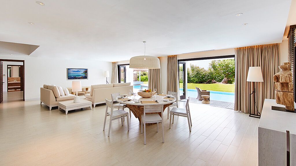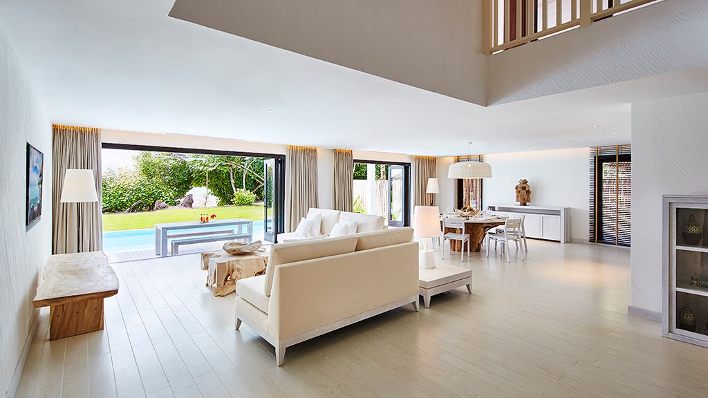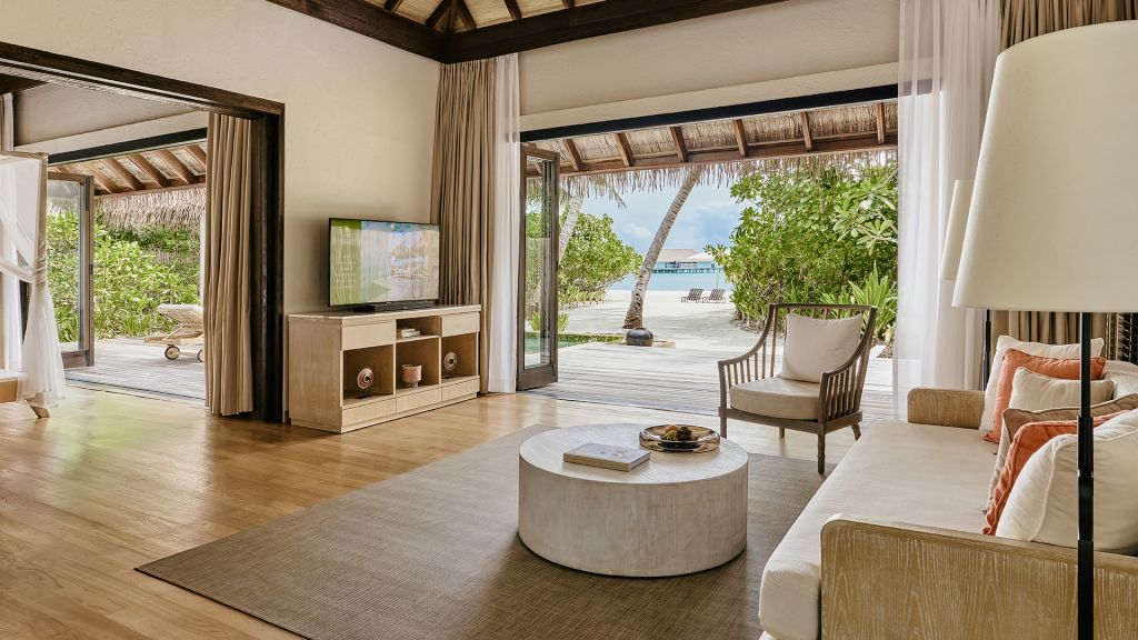 These villas are our largest one-bedroom accommodation with ample dining and living areas, for families that enjoy enhanced privacy and the luxury of extra space. Beach villa living is a unique mix of privacy and openness: french doors connect the bedroom to the poolside and the bathroom blends into the outdoors. key details panoramic sunset view tropical garden view separate living and lounge area direct beach access private terrace with pool outdoor showerone king bed the services of a shared butler (all suites and villas) accommodates up to three adults and one child freestanding bathtub with separate shower stall