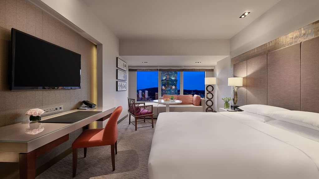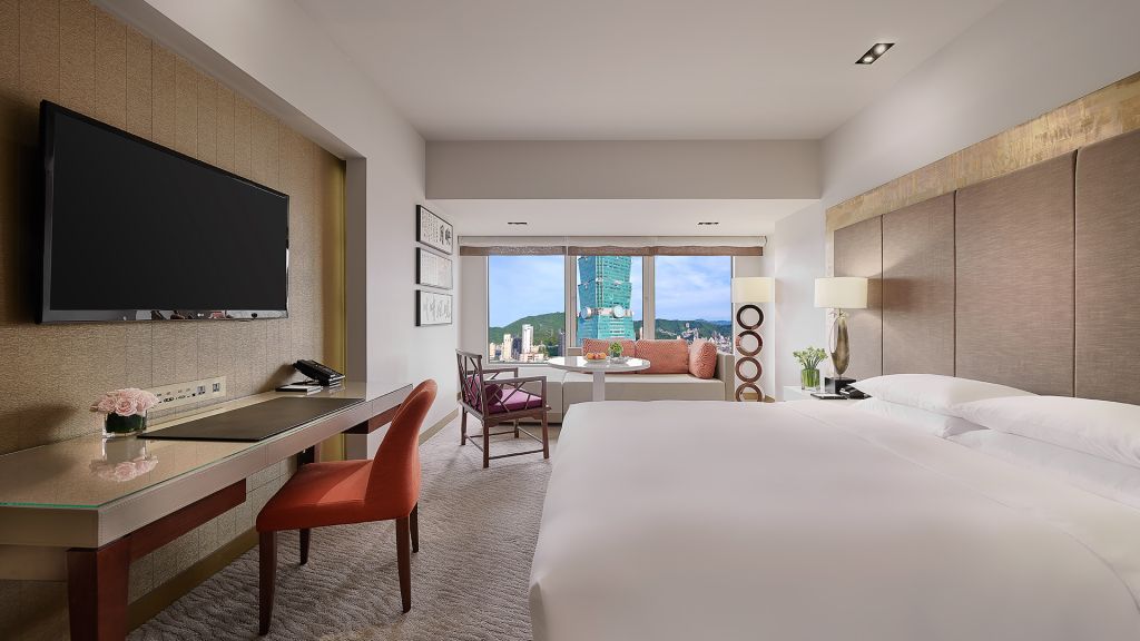Enjoy access to the Grand Club Lounge and relax in this 538 sq ft (50 sq m) space with a view of Taipei 101, sleeping area and living space, featuring a king bed, and advanced entertainment systems.