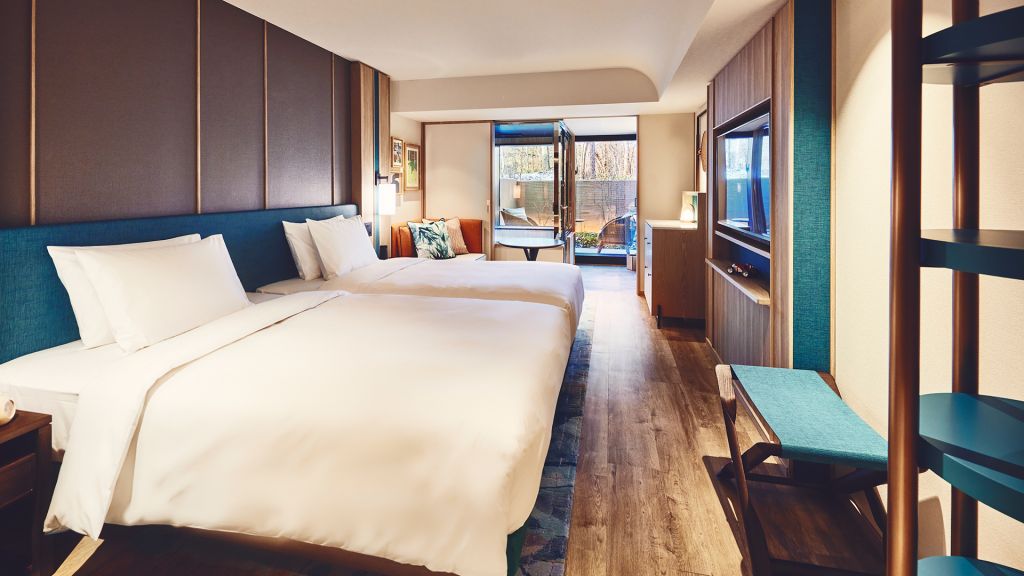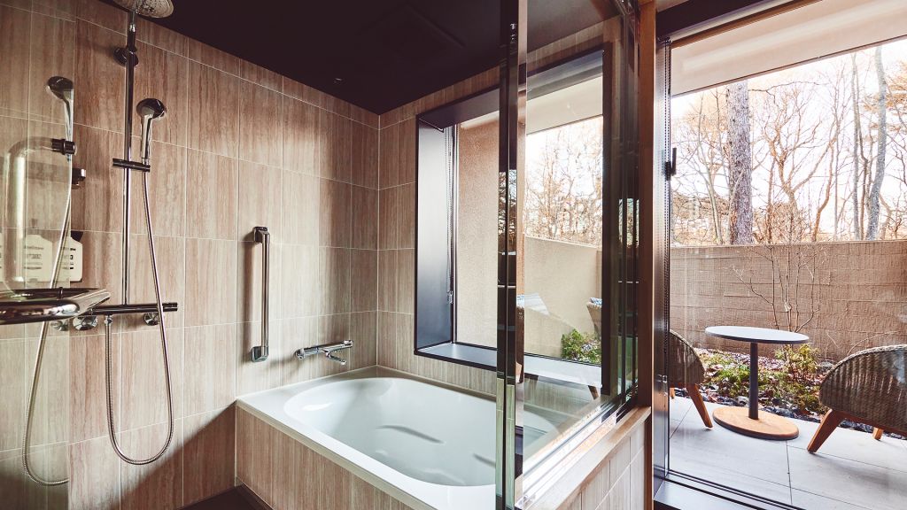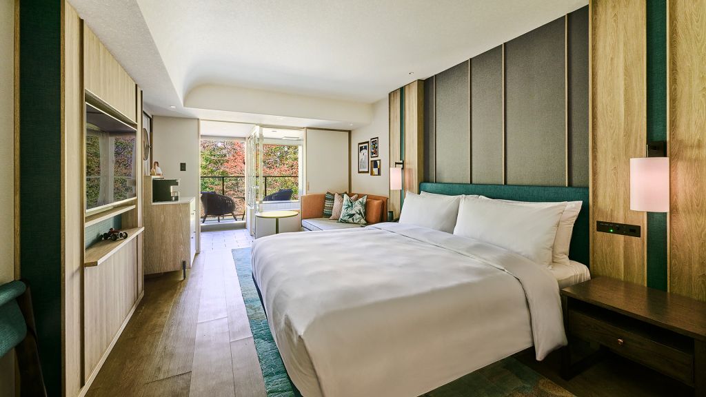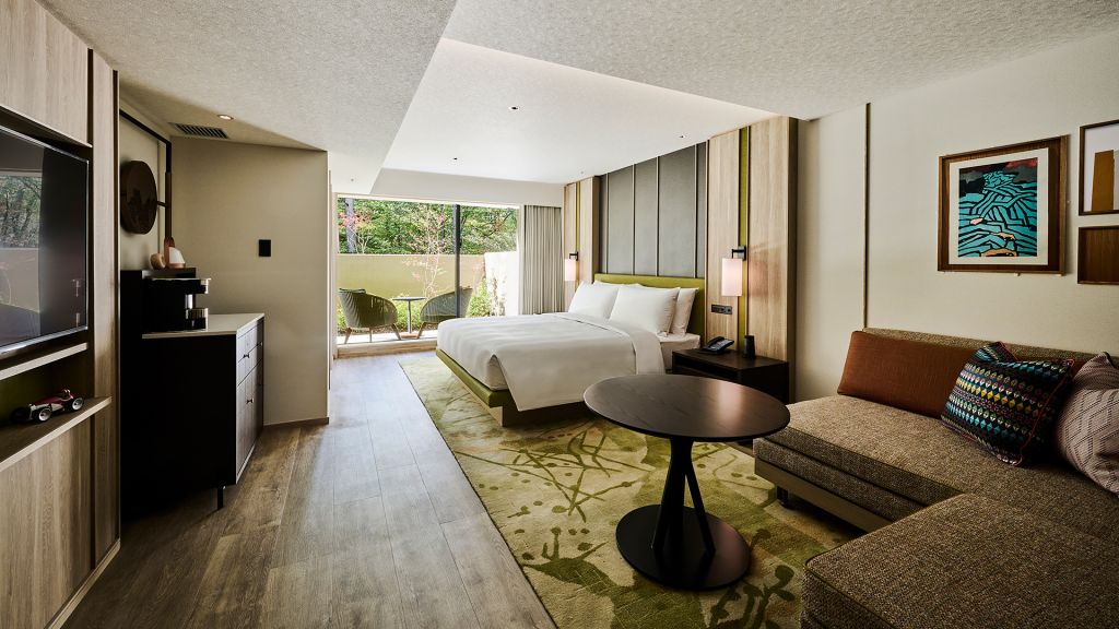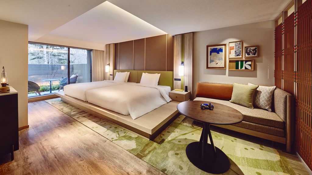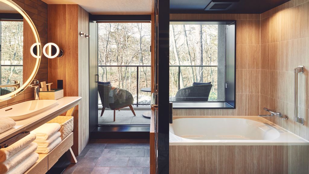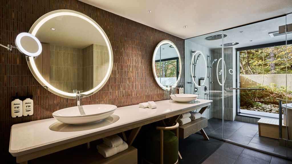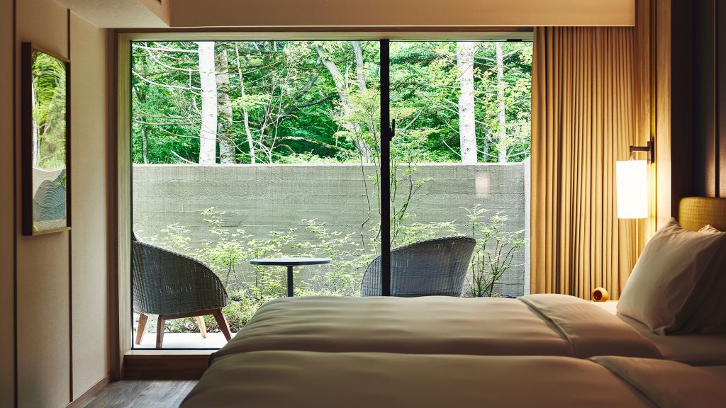 The guest rooms and suites unfold like refined forest villas, each with a backdrop for lingering mornings and quiet evenings. Textures and tones echo the surrounding woodland and local heritage, with bespoke art that reflects Karuizawa’s natural narratives. Rooms offer views of garden greenery or riverside light, encouraging you to slow down and look more closely.