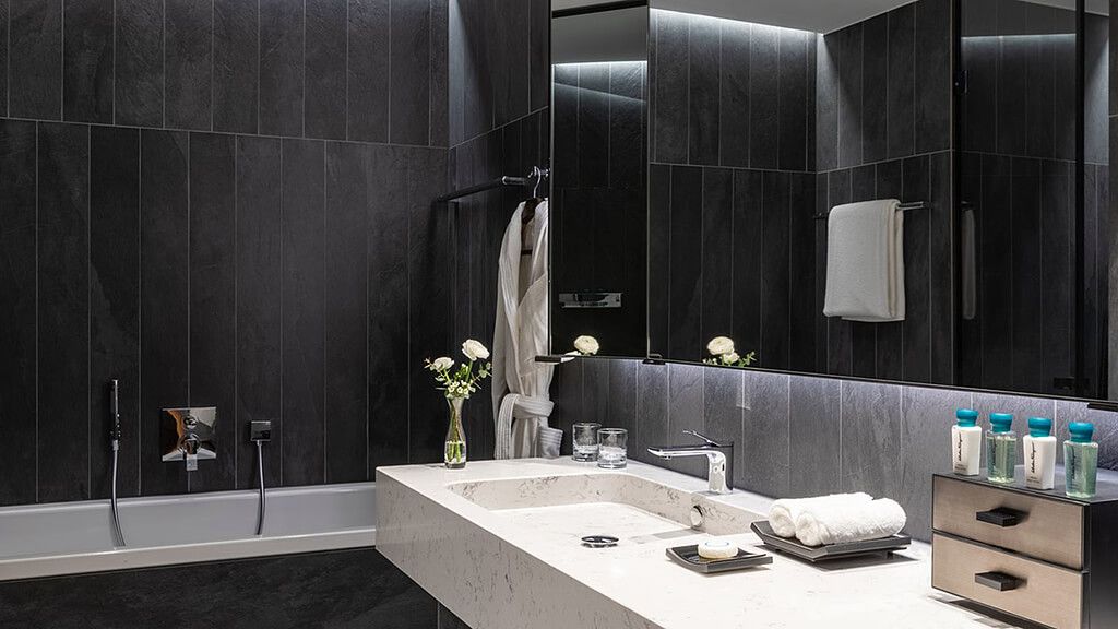 Premier room - 1 king or 2 twin beds. Magnificent views to the surrounding mountains. Spacious room with extensive balcony, panoramic windows, complimentary wi-fi, flat screen tv including mobile mirroring, coffee and tea making facilities. Located in the new wing showcasing state of the art interior design and functionality. Connecting rooms available on request and upon availability. Bathroom with a separate bathtub and walk-in rain shower. Maximum occupancy: 4 persons (including toddlers and infants). Room size 41 - 47 sqm.