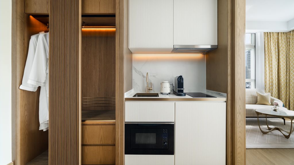 With 188 rooms, suites, and penthouse residences that blur the line between residential ease and refined design, guests arrive at homes defined by clever layouts and handcrafted details. Interiors respond to the city’s light, some looking over the urban latticework, others to the green edges of nearby parks. Each space balances thoughtful utility with elegant proportions, whether you’re settling in for a night or an extended stay.