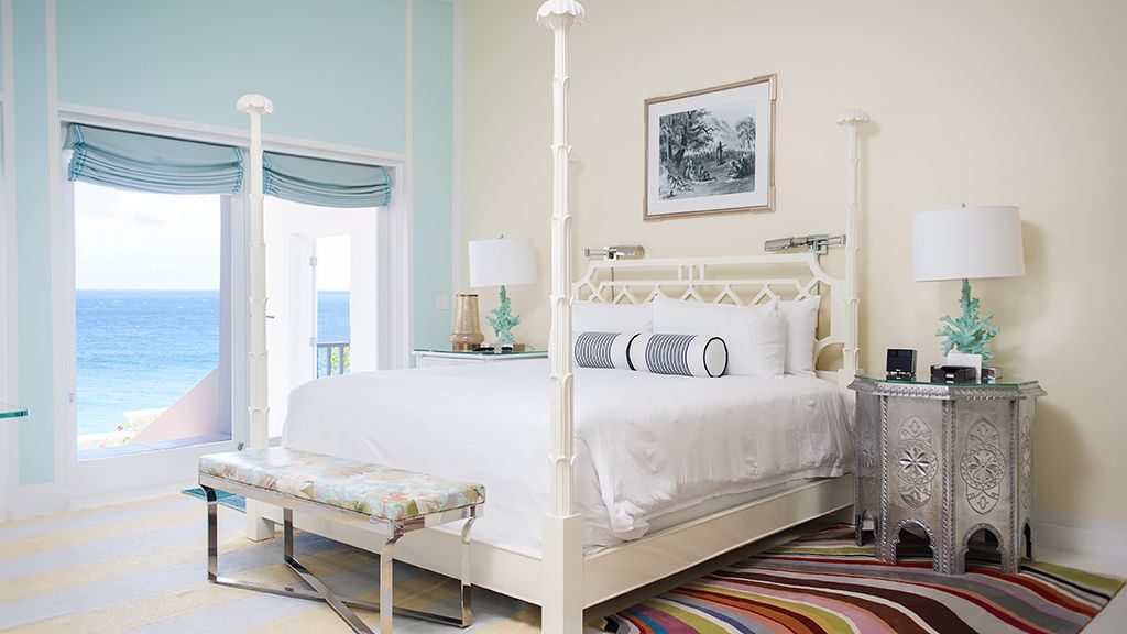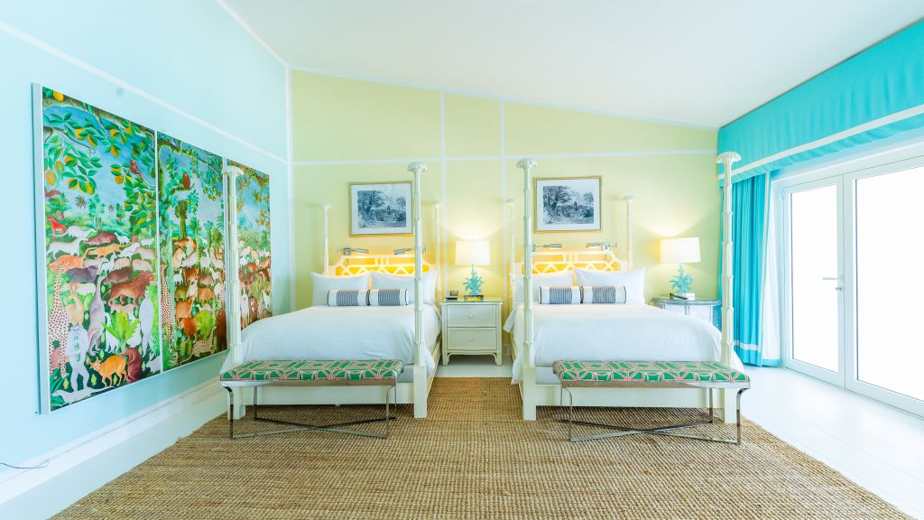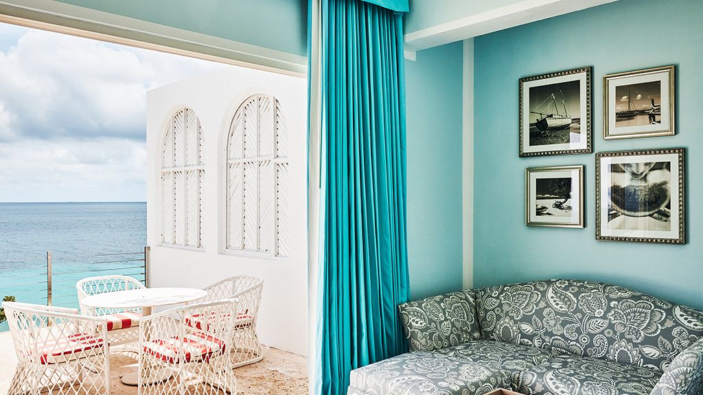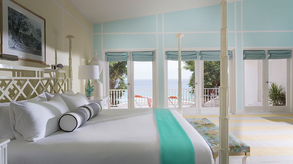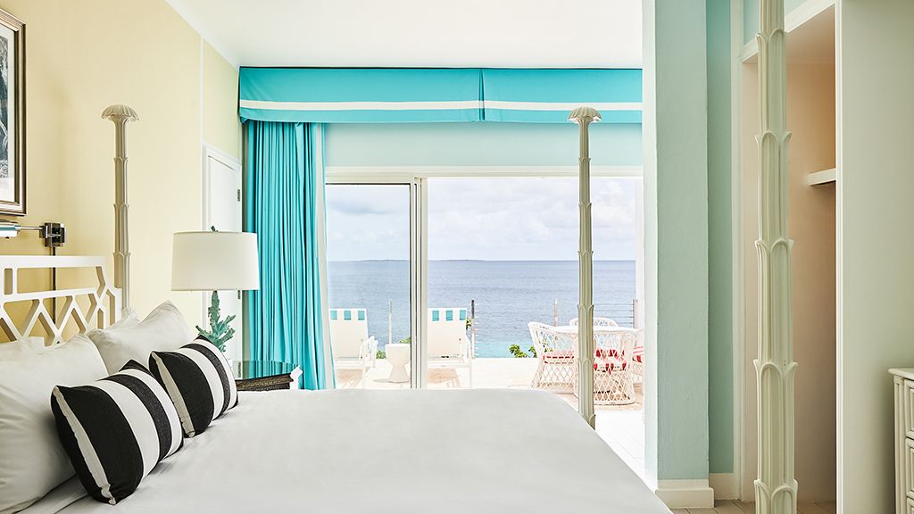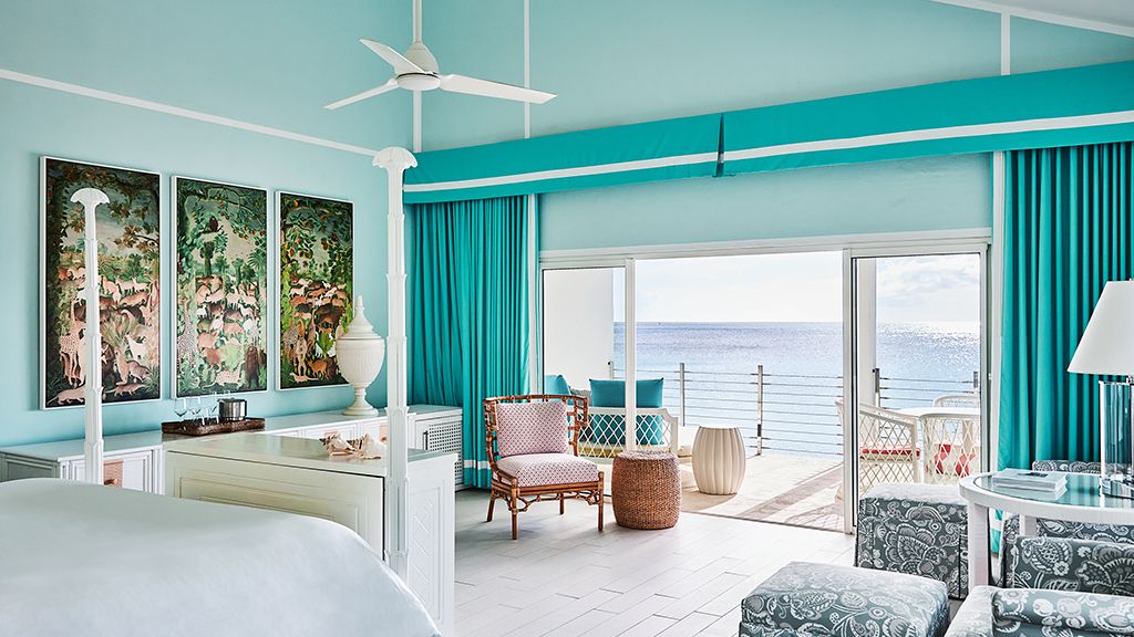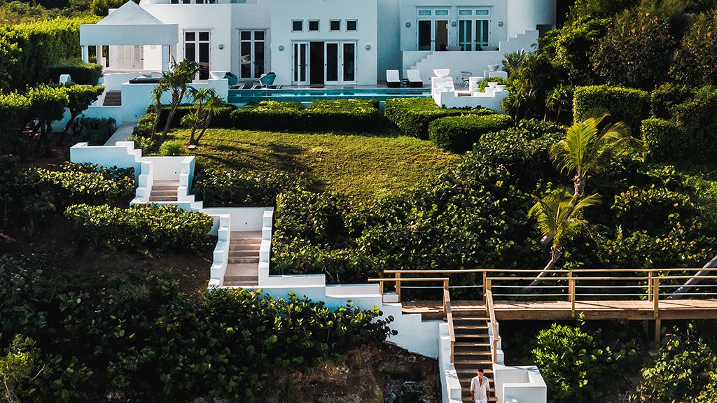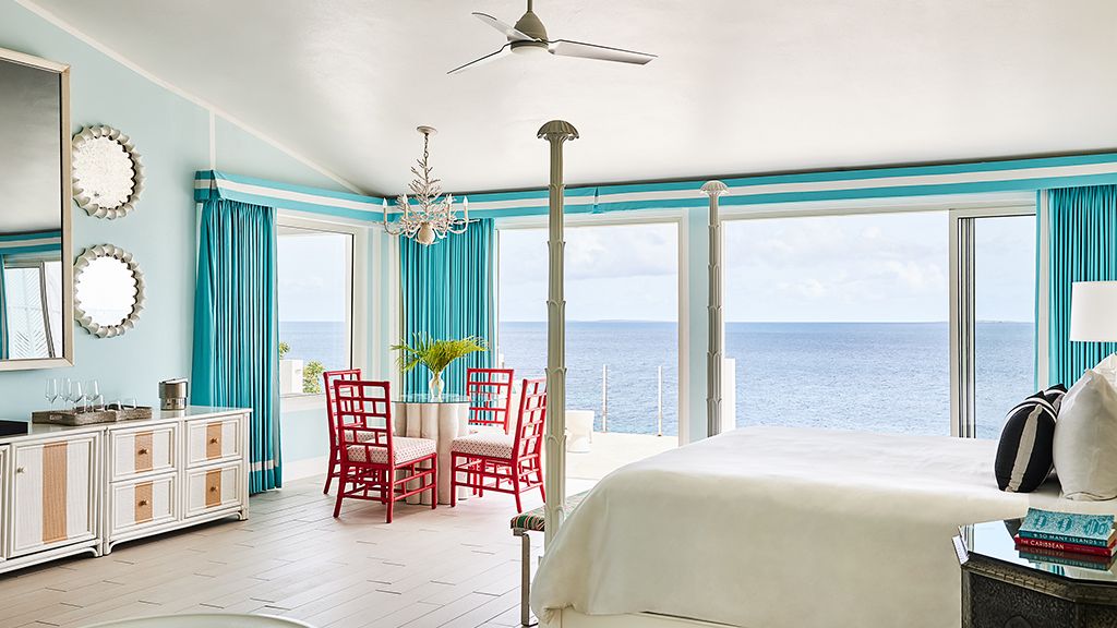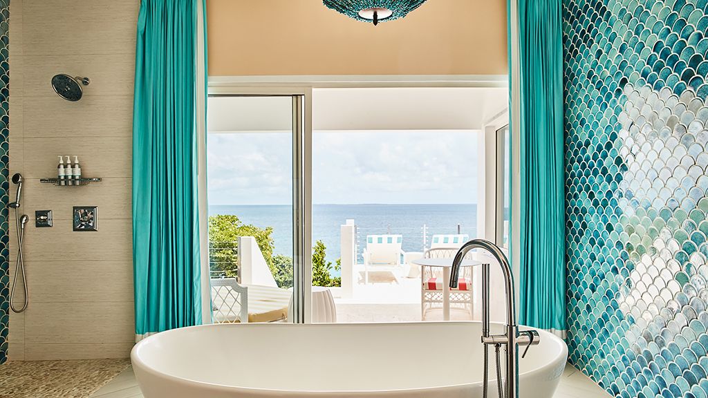The resort sits atop a rugged bluff that cascades down to pristine white sands and the azure waters of Turtle Cove. Within, guests have 63 bright, contemporary accommodations to choose from. These sophisticated spaces range in size from generously-apportioned guestrooms, to lavish villas that leave no expense spared. Each features a mesmerizing tropical aesthetic, with robin’s egg blues and bright yellows evoking the island’s unique sense of place, while floor-to-ceiling windows and spacious terraces help to showcase the glorious tropical surroundings.