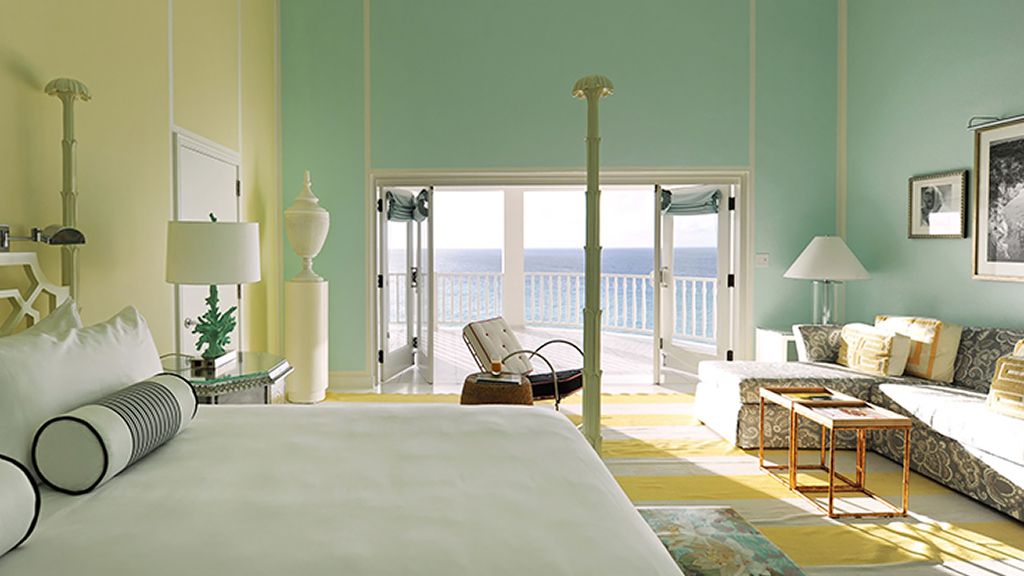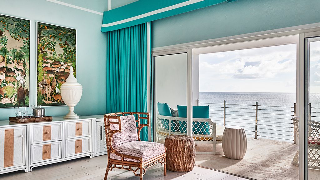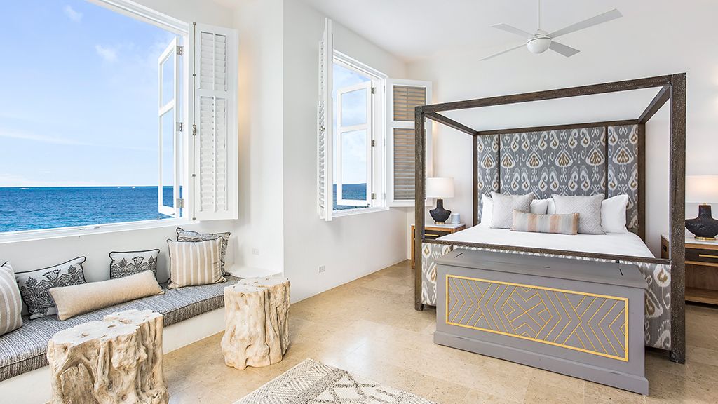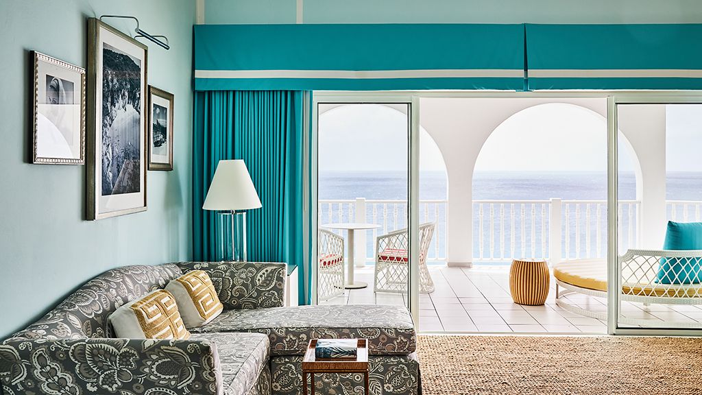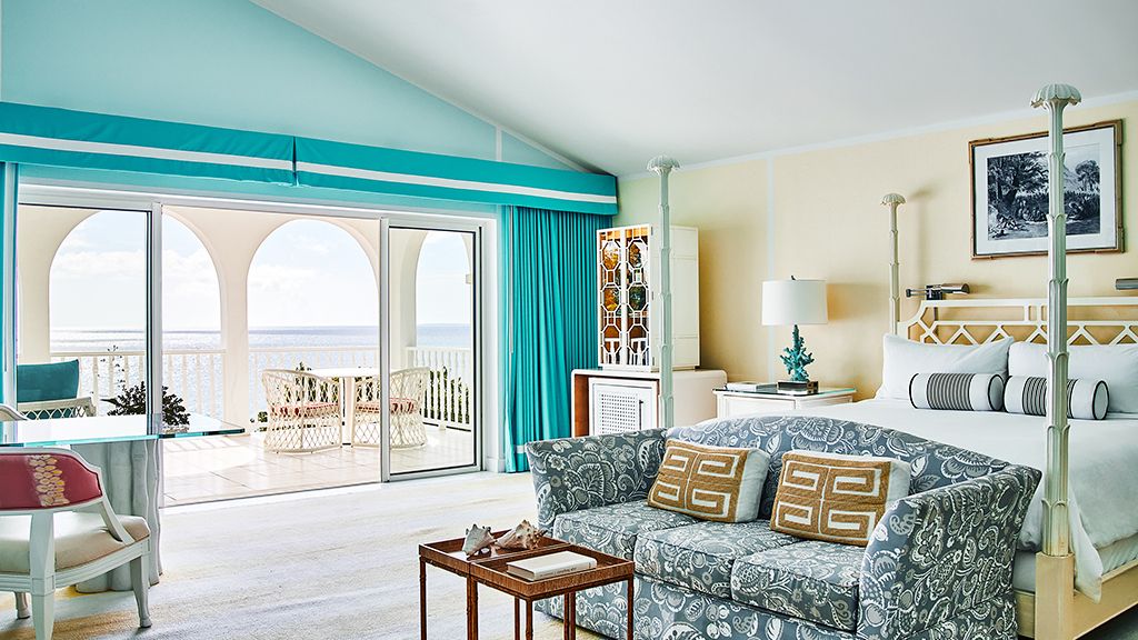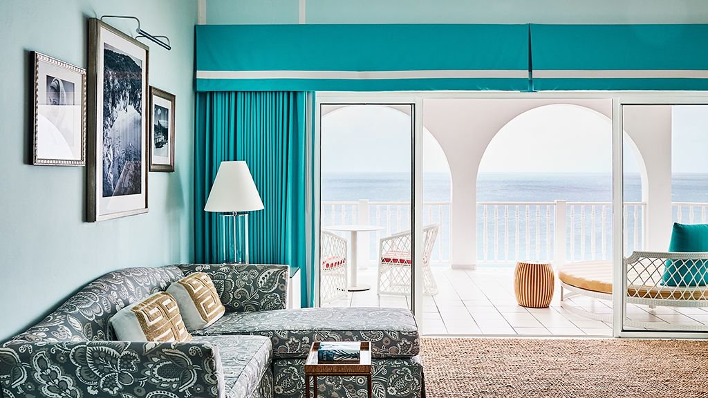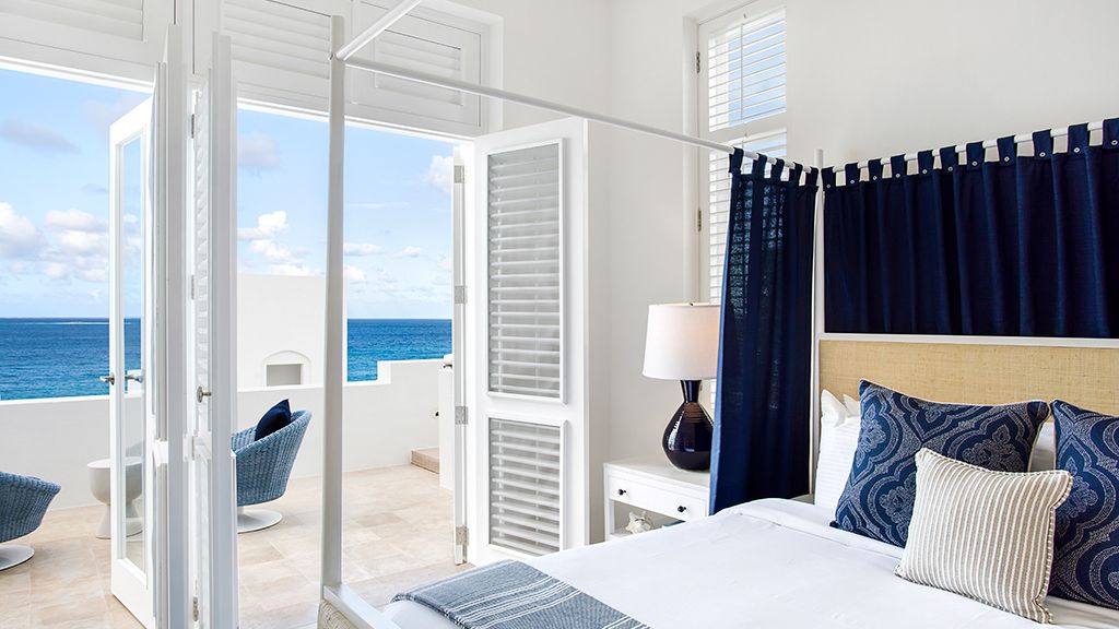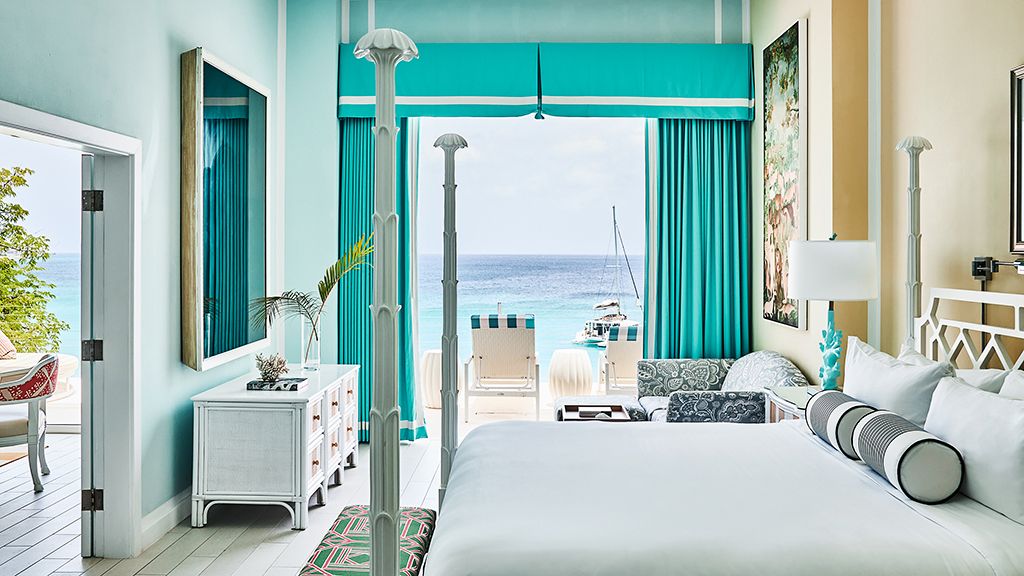The resort sits atop a rugged bluff that cascades down to pristine white sands and the azure waters of Turtle Cove. Within, guests have 63 bright, contemporary accommodations to choose from. These sophisticated spaces range in size from generously-apportioned guestrooms, to lavish villas that leave no expense spared. Each features a mesmerizing tropical aesthetic, with robin’s egg blues and bright yellows evoking the island’s unique sense of place, while floor-to-ceiling windows and spacious terraces help to showcase the glorious tropical surroundings.