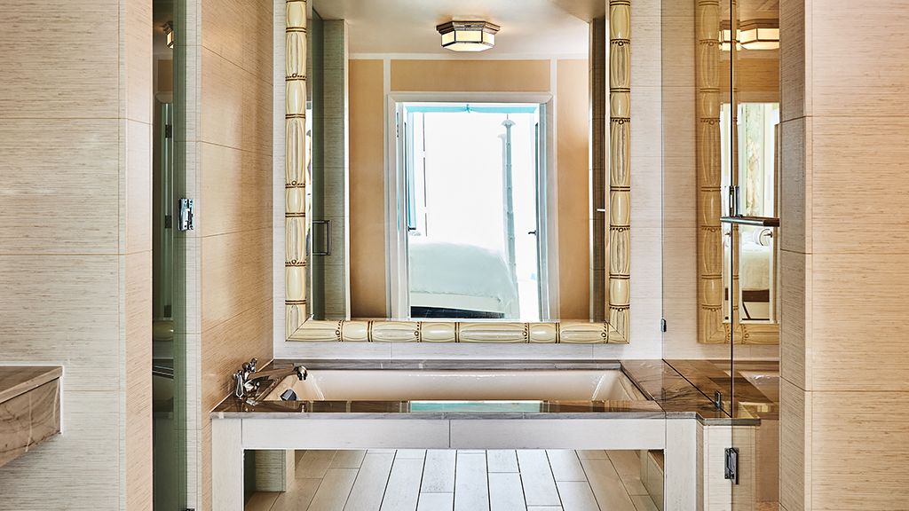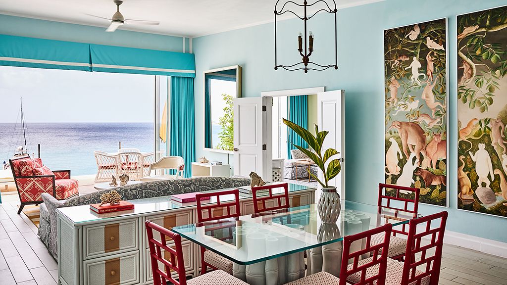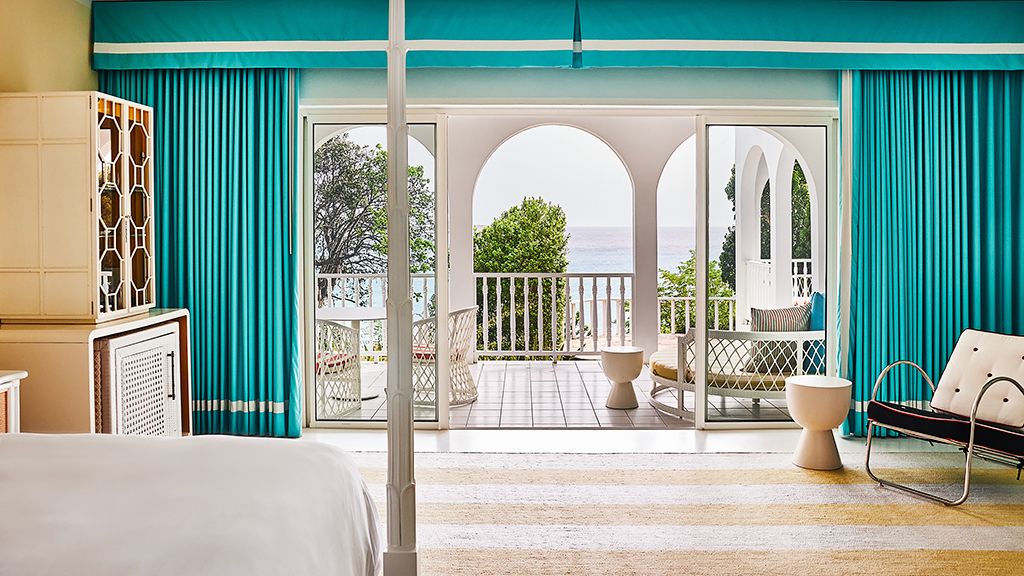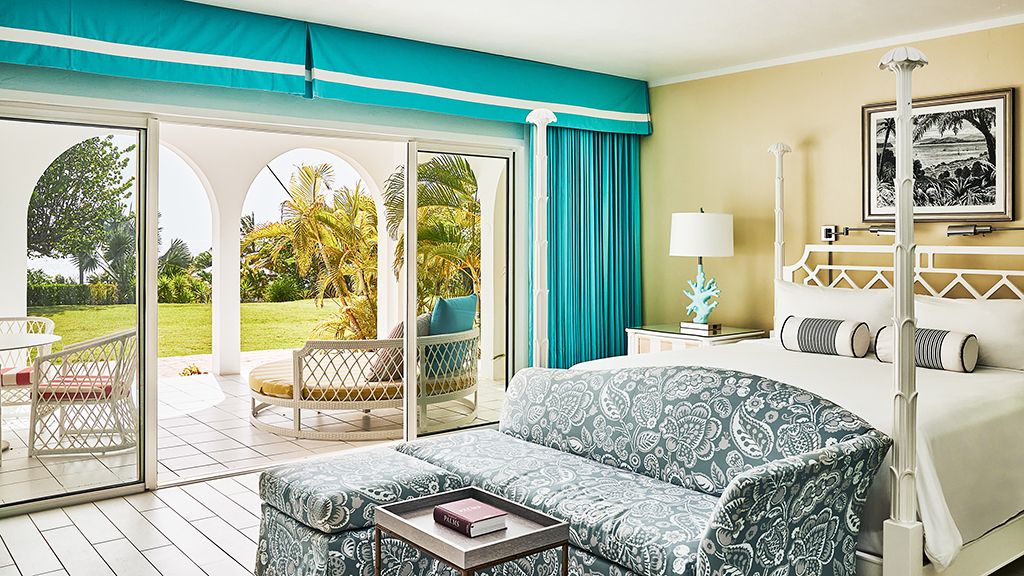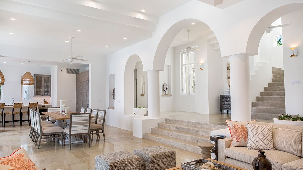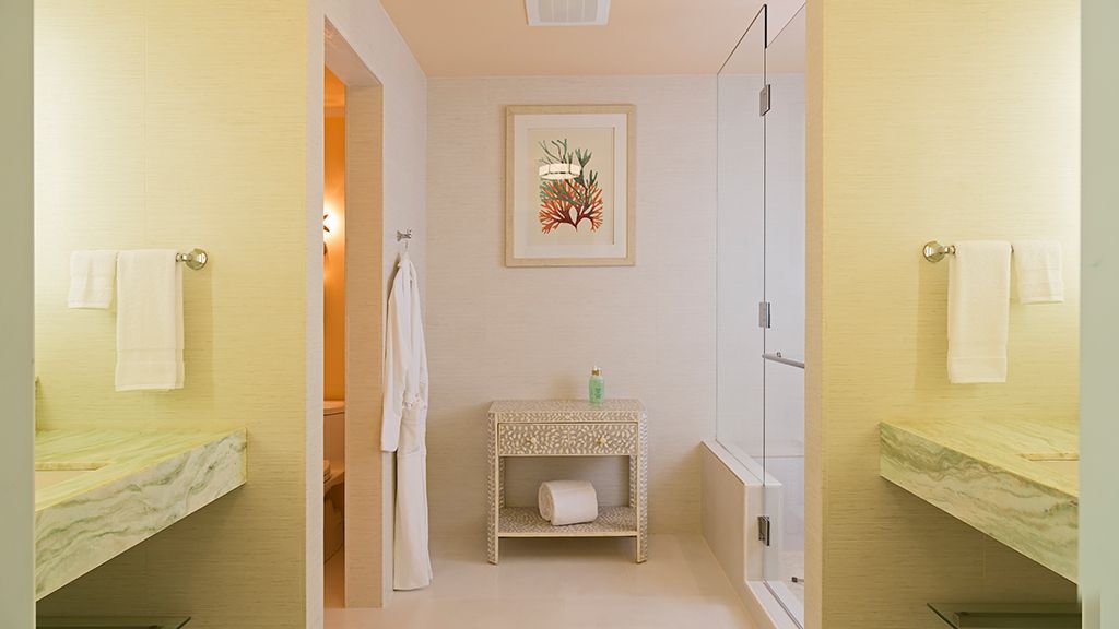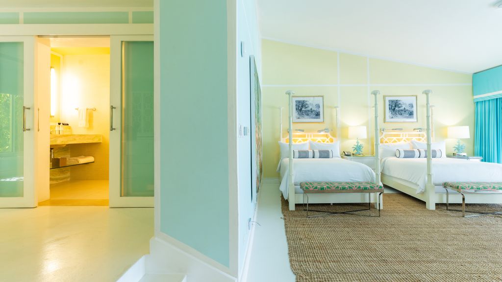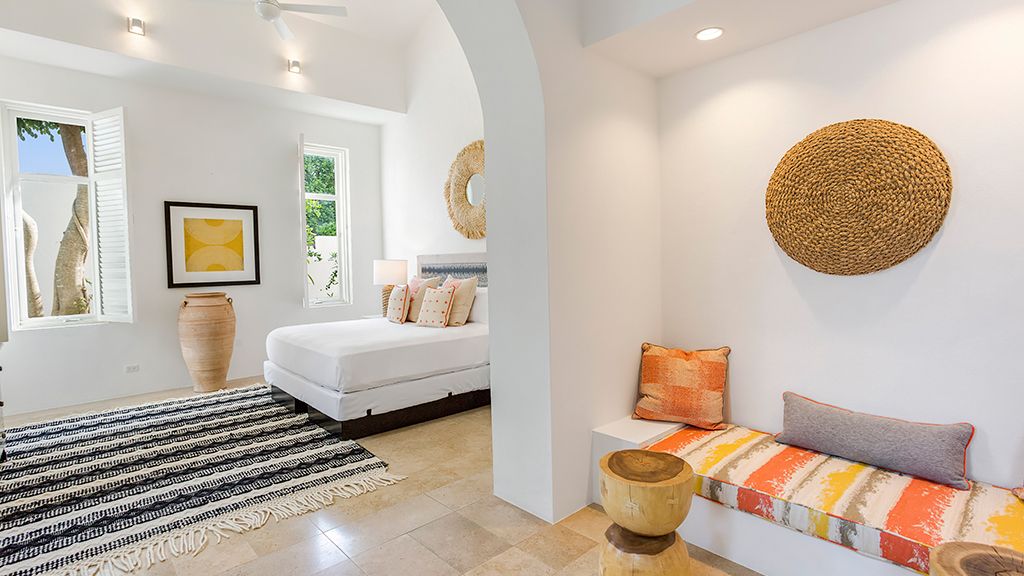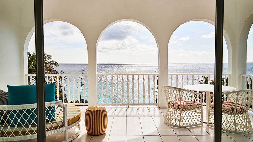 The resort sits atop a rugged bluff that cascades down to pristine white sands and the azure waters of Turtle Cove. Within, guests have 63 bright, contemporary accommodations to choose from. These sophisticated spaces range in size from generously-apportioned guestrooms, to lavish villas that leave no expense spared. Each features a mesmerizing tropical aesthetic, with robin’s egg blues and bright yellows evoking the island’s unique sense of place, while floor-to-ceiling windows and spacious terraces help to showcase the glorious tropical surroundings.