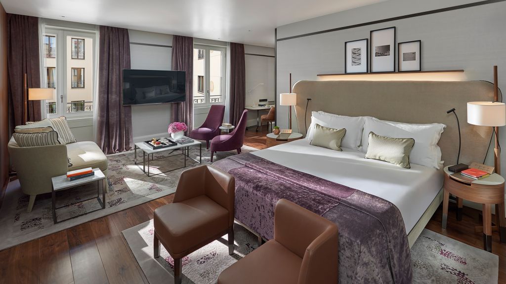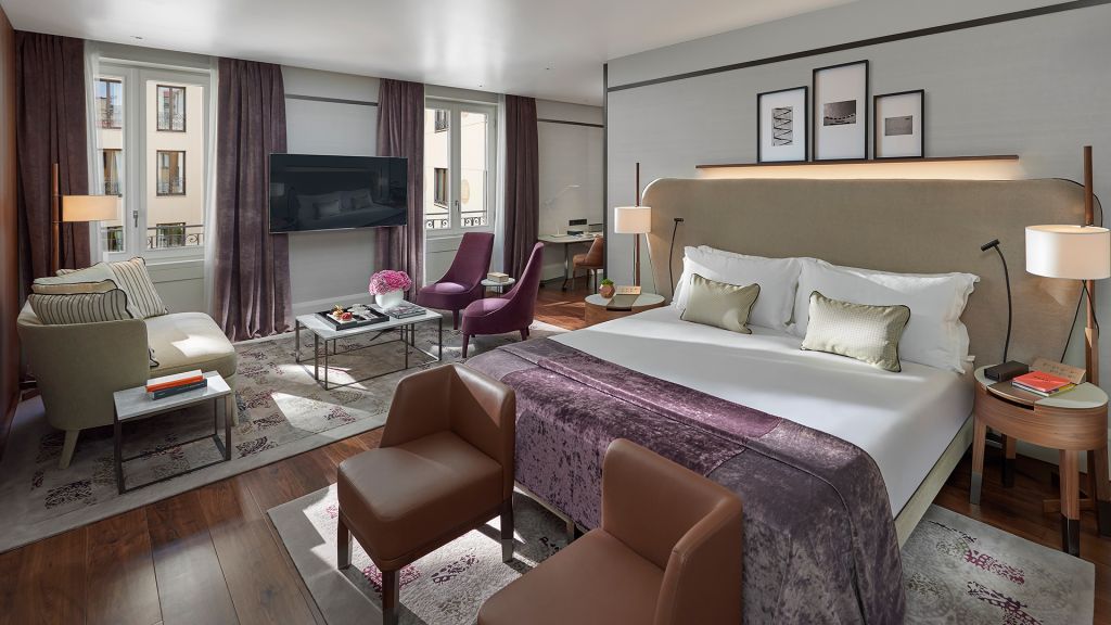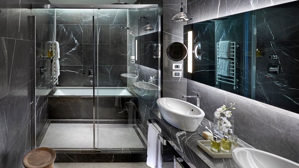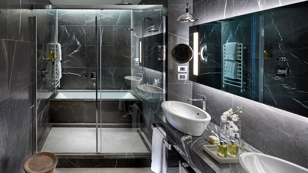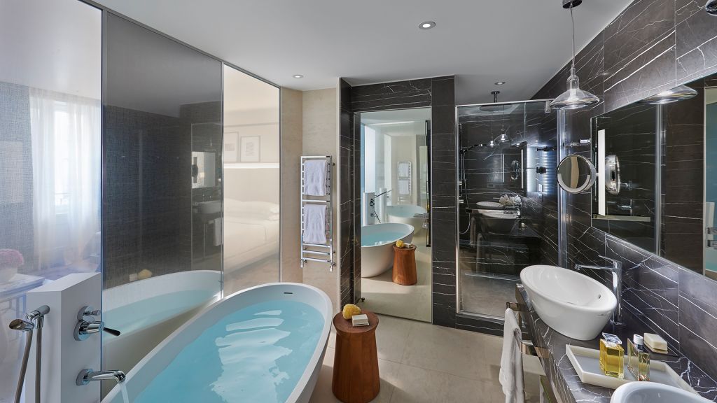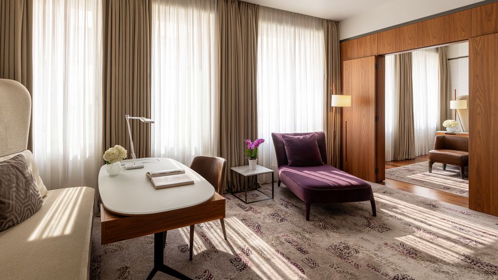Featuring a large living room with sofa and desk, a marble bathroom and a private master bedroom, these beautiful connecting suites offer elegant details such as walnut wardrobes, wooden floors and designer furniture.