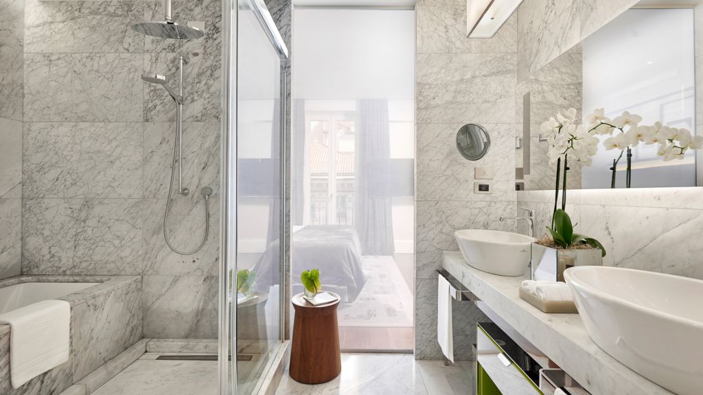 These beautiful suites feature a master bedroom with a living room & a large marble bathroom. Providing a calm retreat from the stir of the city, the elegant décor offers a serene, neutral interpretation of classic milanese style.