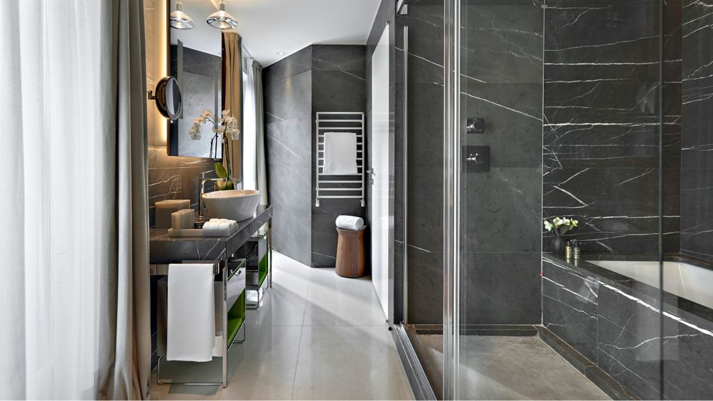 Featuring custom-made furnishings including B&B Italia desks, wood floors and photos by Antonio Salvador, rooms enjoy unique individual layouts. Italian marble bathrooms have a spa-like feel with a 'wet area', bath or shower.