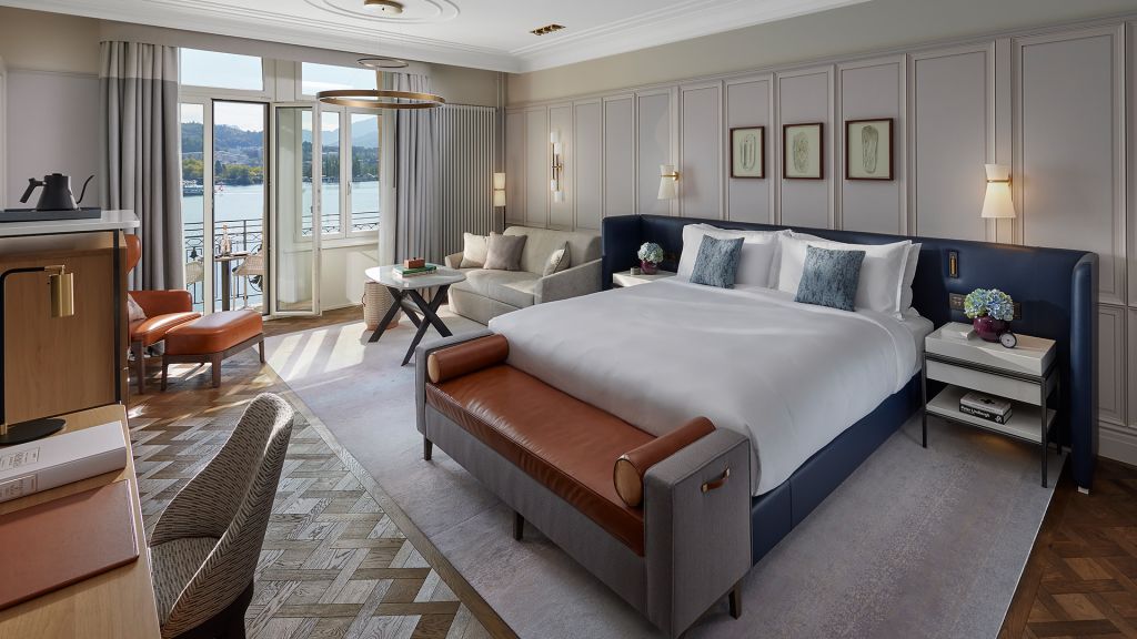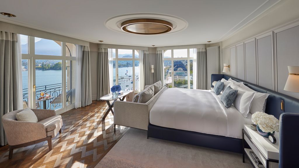 With a light and vibrant colour palette that embraces the beauty of the swiss scenery, these rooms offer modern technology, a luxurious bathroom with diptyque amenities and stunning views over lake lucerne.
