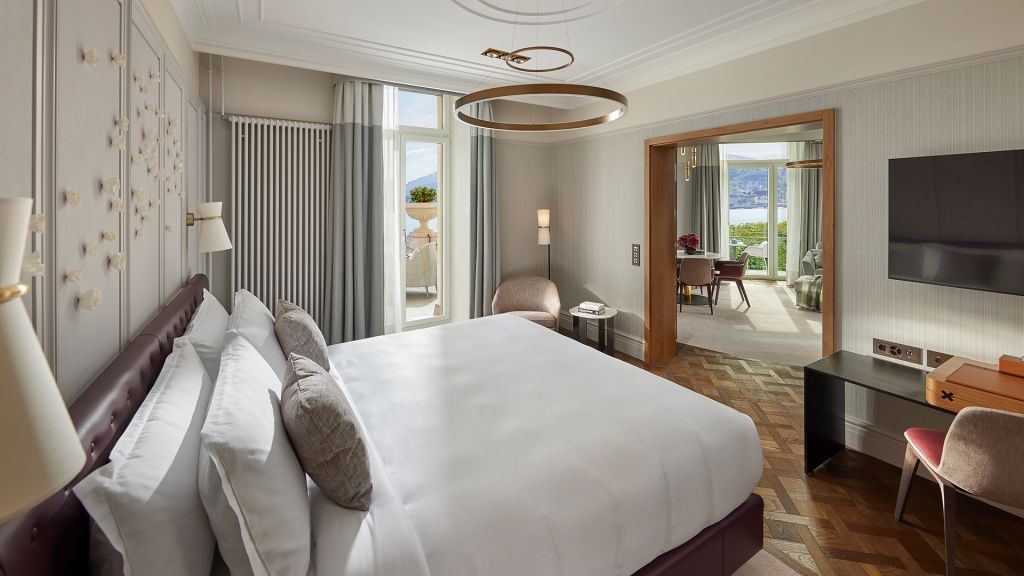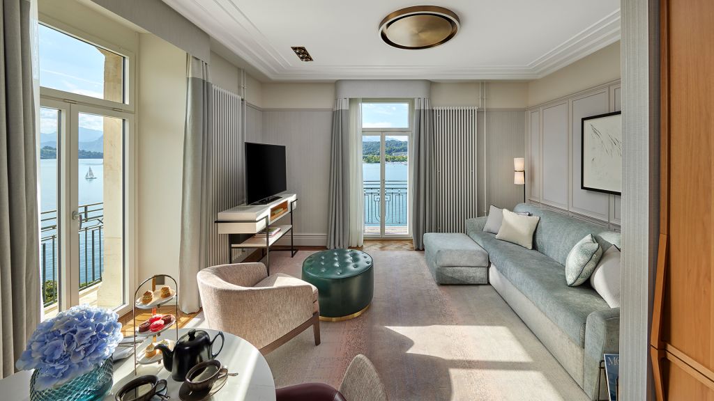 The hotel boasts 136 rooms and suites, each thoughtfully designed to offer understated luxury and comfort. Many accommodations feature balconies with sweeping lake or mountain views, allowing guests to immerse themselves in the natural beauty of the region. The interiors combine classic elegance with modern amenities, creating a serene and inviting atmosphere.