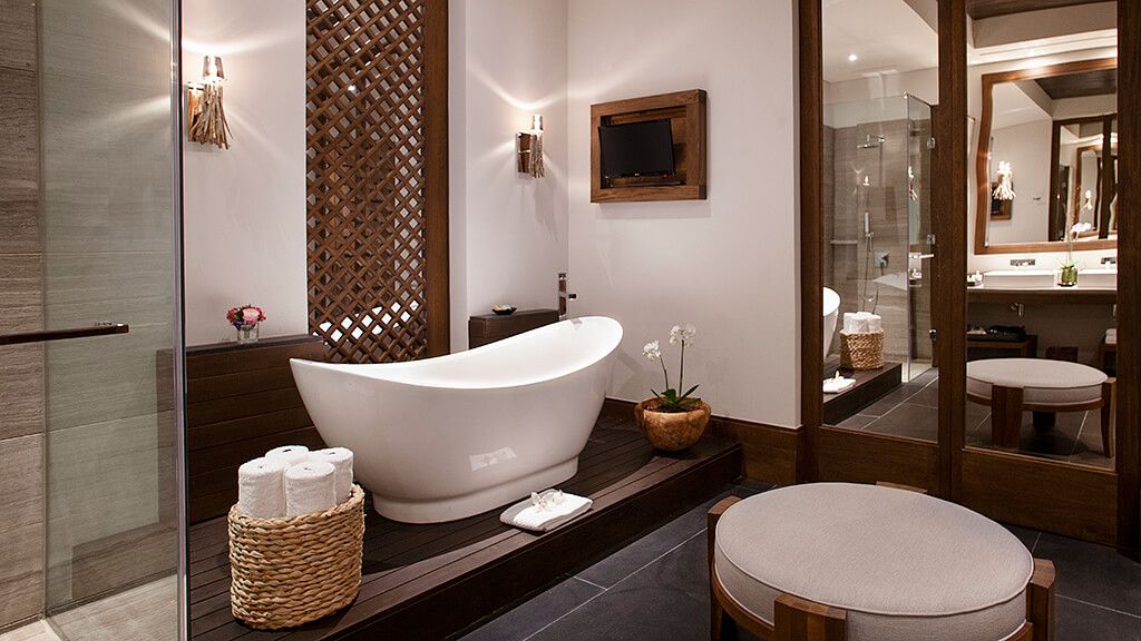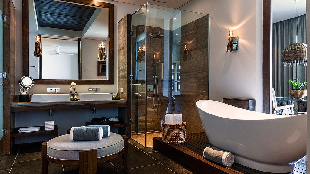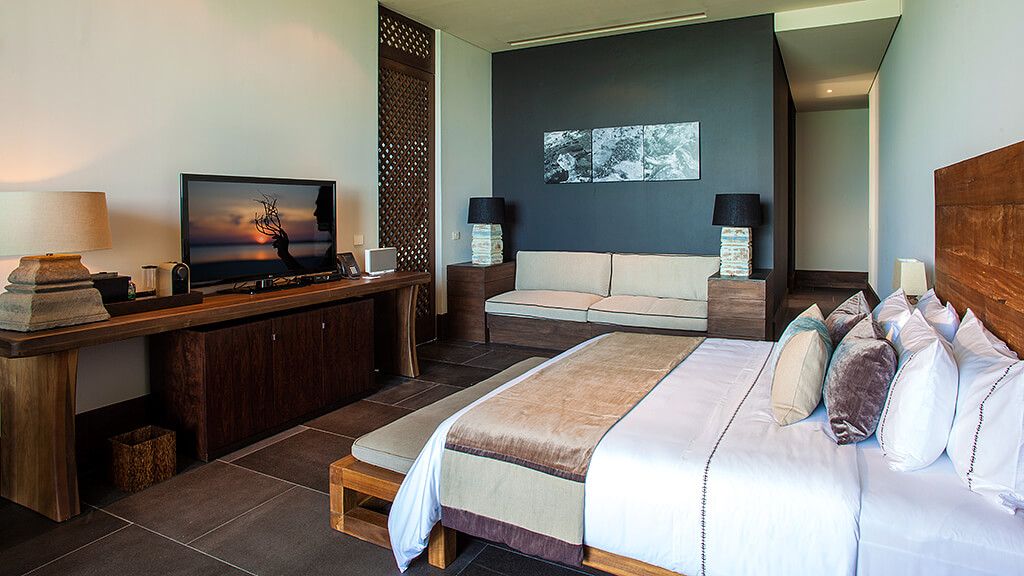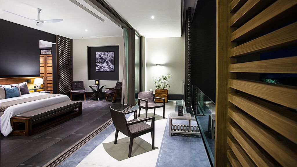 Experience the privacy of your own tropical garden from this 2422 sq ft Private Pool Villa which provides a bedroom suite nestled in a tropical garden with an infinity pool and waterfall. This villa features an extensive 1044 sq ft outdoor area and 1378 sq ft of interior space. A king bed draped in fine cotton linens, and blackout curtains ensure a night of comfort and tranquility. The large bathroom has a freestanding deep soaking tub with separate rainfall shower and luxurious amenities such as plush bathrobes, slippers, and ESPA products. In-suite entertainment is provided through a state-of-the-art system with flat panel televisions in, bedroom and bathroom, as well as IP Avaya telephone, Radio with iPod dock, and WIFI. The suite is equipped with a mini-bar and Nespresso coffee maker.