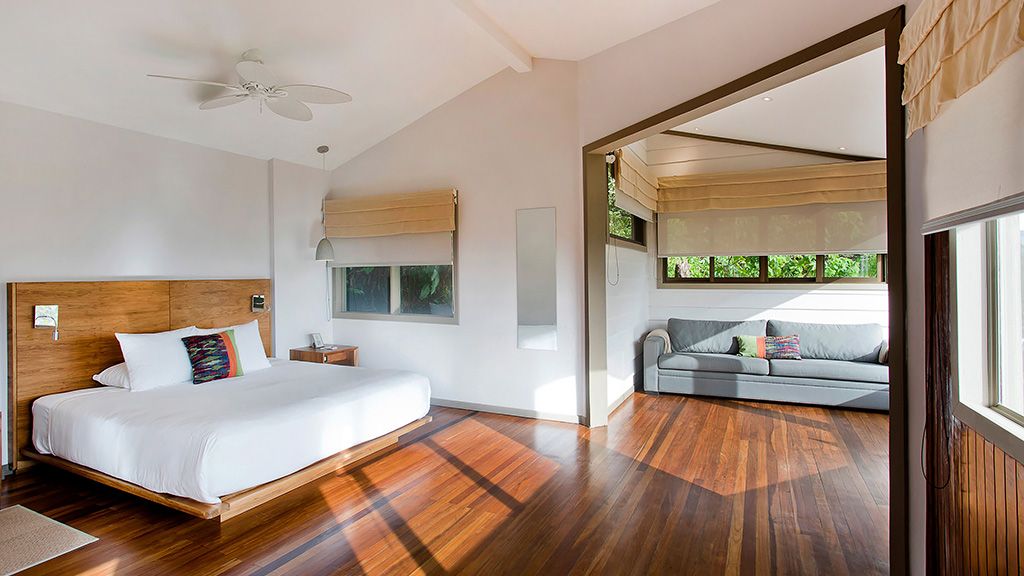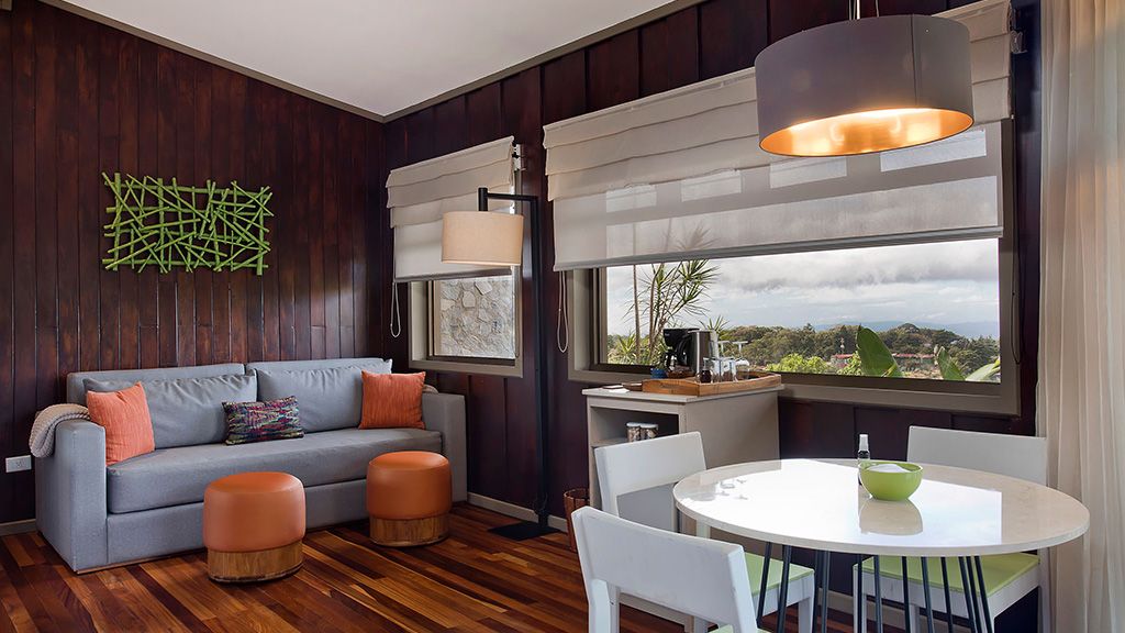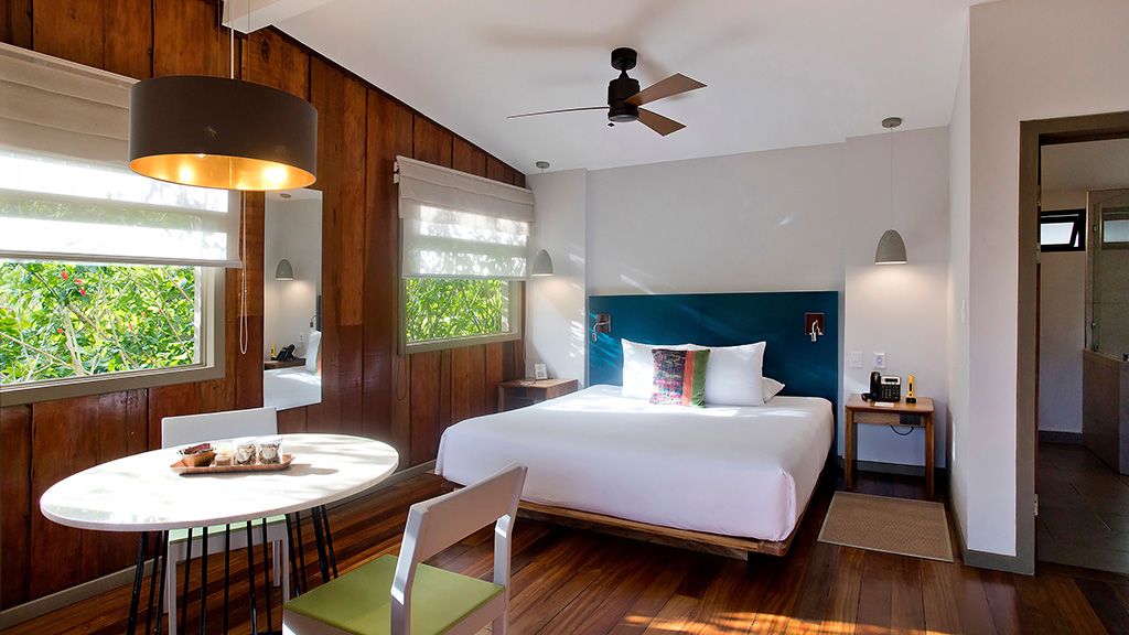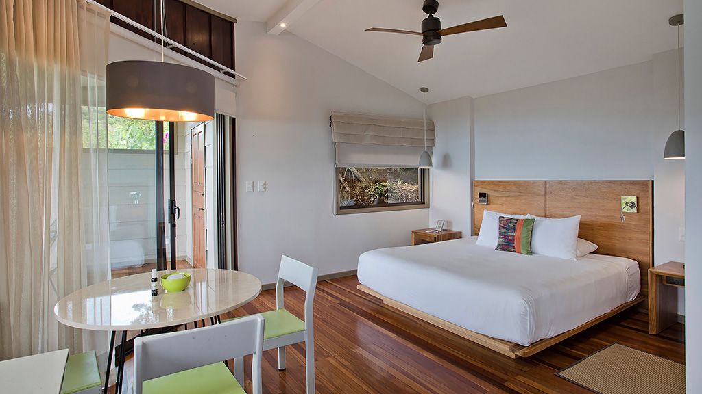 High-touch service comes as standard at Senda Monteverde, with just 28 charming and modern guest accommodations to choose from. These light-filled, wood-paneled spaces sprawl across the property inside mountain bungalows overlooking the cloud forest or Gulf of Nicoya. Highlights include open-air terraces with cozy seating, bathrooms with rainfall showerheads, complimentary Wi-Fi Internet, and twice-daily housekeeping service.