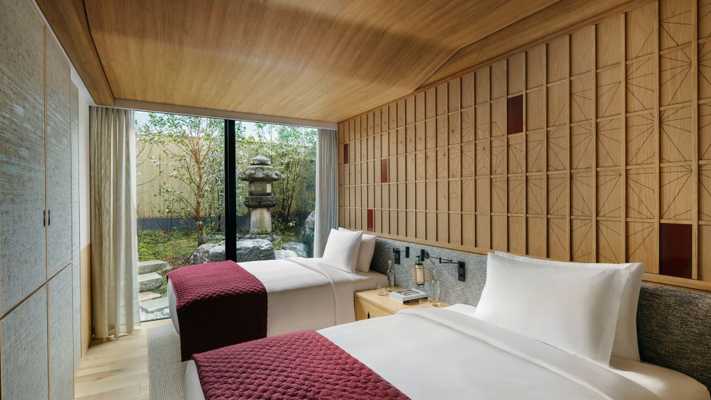 With a twin configuration and all the modern conveniences at your fingertips, this peaceful garden room offers serene views of the Japanese inner courtyard from the spacious balcony. Find tranquility in the Deluxe Garden Twin. This spacious room features twin beds, a living area, and a private balcony offering serene views of the central courtyard garden. Enjoy the soothing sounds of birdsong and the calming sight of Japanese pine trees as you unwind in this modern Japanese-inspired sanctuary. Maximum occupancy: 3.