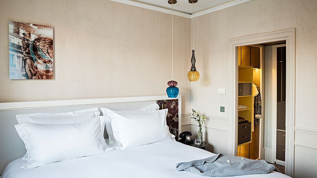 The rooms and suites are designed to feel like intimate Parisian apartments, immersing guests into the typical atmosphere of a Haussmannian residence. The decorations combine the spirit of the hotel’s Club origins with sparkling Parisian glamour. Mybed mattresses, Nespresso coffee machines and Hermes products are all at your disposal.