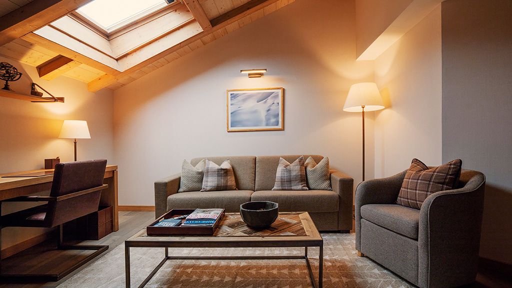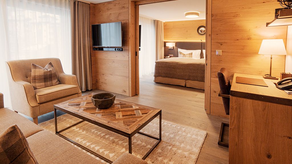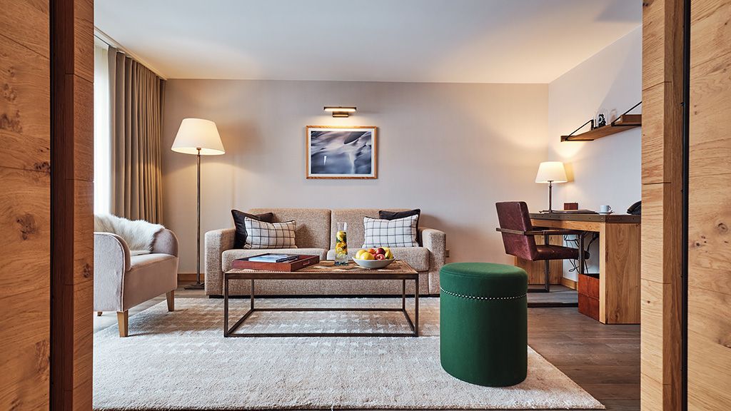 This unique Suite offers a separate living room (sofa bed on option) and bedroom with two bathrooms. From the balcony on the top floor you benefit of the view of the mountain range. Enjoy some relaxation time in front of your own fire place. Complimentary amenities include: High-speed WIFI 2x 42 inch HD TV IPTV with movies on demand & interactive news Bluetooth entertainment system Nespresso coffee, tea and refreshments from the minibar Bathrobes and slippers Bogner beauty products Safe Gas fireplace.