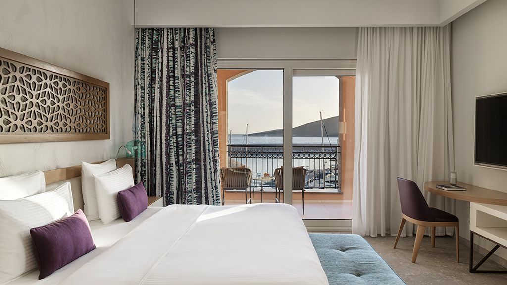 King simmons sweet sleeper bed; up to 3 adults or 2 adults and 2 children; open floor plan with lounge area and bedroom spaces; rechargeable refreshment center; luxury lavazza espresso machine; minibar; wine selection; kitchenette with electric stove, microwave, refrigerator, freezer, dishwasher; ceramic and marble bathroom with underfloor heating; double vanity sink; hansgrohe rain shower; acqua di parma toiletries; en suite powder room with toilet; 55’’ interactive led flat-screen iptv; media hub with hdmi & bluetooth connection to tv; work desk with tv connection; bedside usb phone chargers; intuitive lighting system; spacious balcony; in-room safe adequate for a laptop; available rollaway bed; marina and village views; turn down service: daily breakfast; complimentary wi-fi; connecting rooms are available.