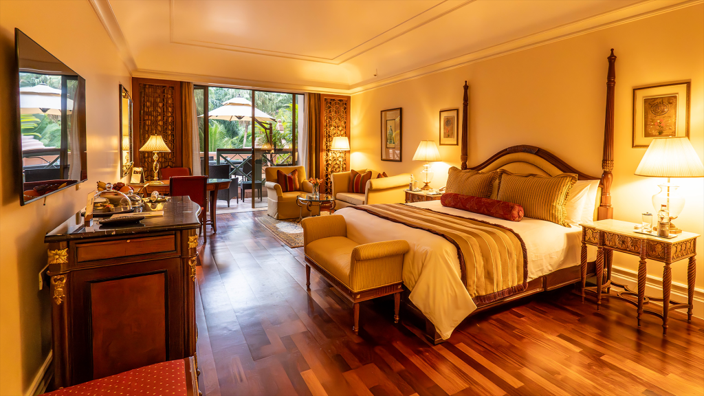 Thankfully, The Leela Palace Bengaluru isn’t just a looker. The 357 guest accommodations may vary in size but they’re united by their uniform dedication to palatial décor and world-class comfort. Each is clad in regal reds and golds, with pampering amenities like Tishya by The Leela bath amenities, complimentary Wi-Fi Internet, and nightly turndown.