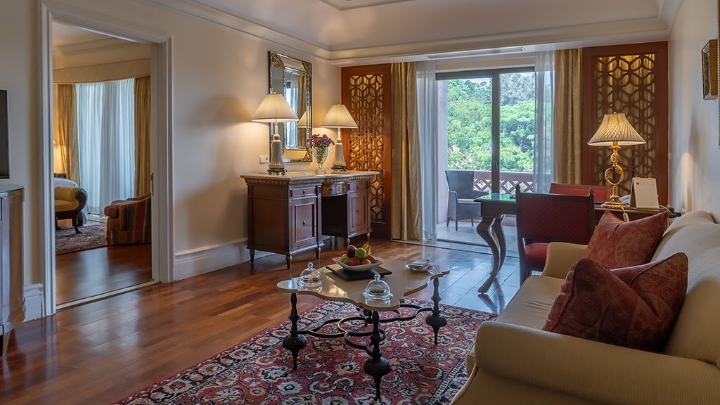 The terrace suites are located on the first floor and offer views of lush gardens with cascading waterfalls. They are one-bay suites that are spread over 905 sq. Ft. And feature expansive terraces overlooking the great outdoors. Accompanied by complimentary lounge access, these suites feel like a home away from home and are ideal for long-stay guests. The ultimate in luxury, these suites have large independent balconies which open up to beautiful terraces and four-fixture bathrooms with an additional cubicle.