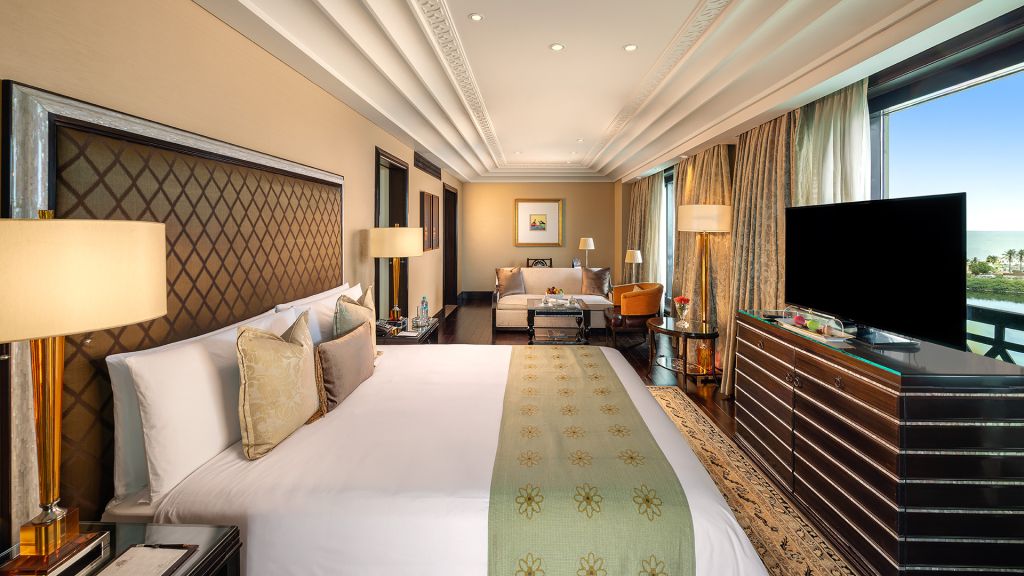Live the charmed life in our executive suites, where elegance meets indulgence. Featuring a spacious bedroom with a sitting nook, powder room, and walk-in wardrobe, each suite is a sanctuary of comfort and style. Marble-finish bathrooms with deep-soaking tubs and panoramic sea views add to the luxurious experience. From custom touches to refined amenities, every detail is designed to make you feel truly royal.