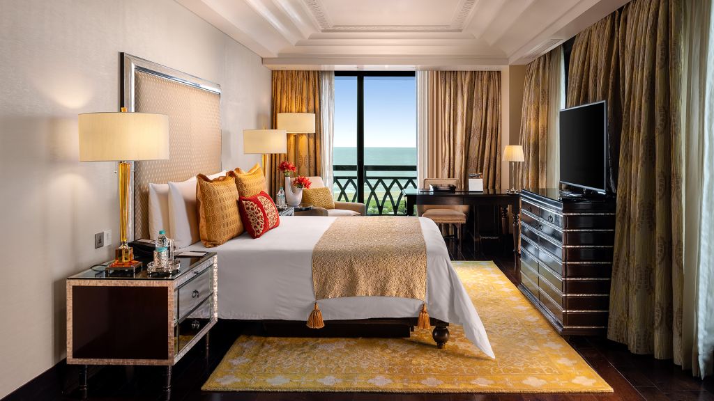 Our premier suites embody the perfect blend of traditional hospitality and modern luxury. With a spacious living room, elegant bedroom, dining area, powder room, walk-in wardrobe, and a kitchenette equipped with a refrigerator and washing machine, comfort meets functionality. Enjoy sweeping sea views, curated art, and signature leela opulence, along with thoughtful touches like a yoga mat and personalized service — all designed to make your stay truly unforgettable.