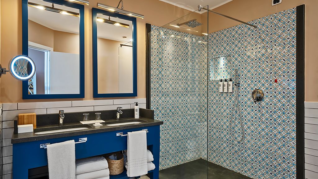 Alongside the stunning vistas all around it, Therasia Resort Sea & Spa is equally spectacular within, hosting 70 classically Mediterranean accommodations. Each of these serene spaces is styled with white tiled flooring, ceramic tiled bathrooms, and natural volcanic rock walls. All feature a private terrace or balcony, and most overlook the Mediterranean Sea. Stay in maximum comfort thanks to amenities that include air conditioning, complimentary Wi-Fi Internet, and a flatscreen TV.