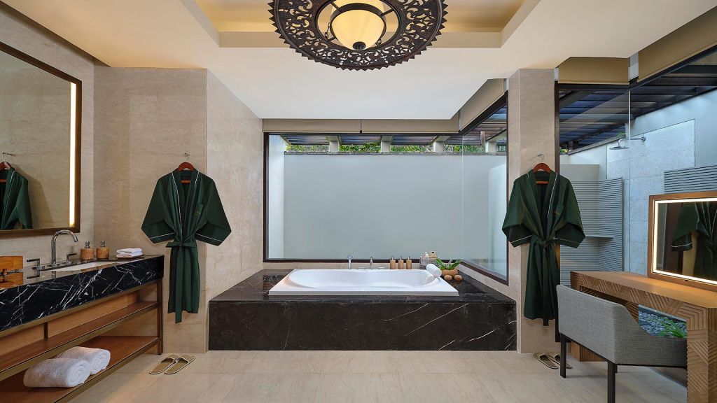 Each suite and villa is a masterpiece of Balinese craftsmanship. Warm wood, flowing fabrics, and open layouts create spaces where the outdoors never feel far away. Whether you’re relaxing in a garden villa or an expansive suite, the attention to detail ensures every stay is as comfortable as it is immersive.