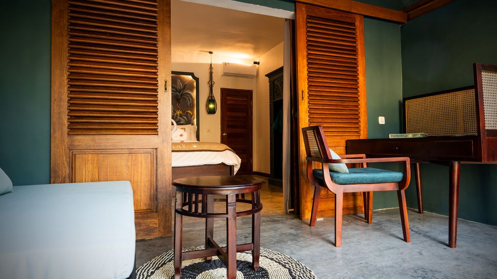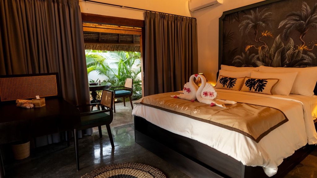 Guests choose from private villas with pools or elegant rooms with shared pools. Each space balances open, airy layouts with tactile details—wooden accents, soft linens, and tropical greenery. Villas like The Leaf and The Swell provide intimate escapes for couples or flexible family arrangements, ensuring every stay is tailored, whether it’s a quiet retreat or a lively gathering.
